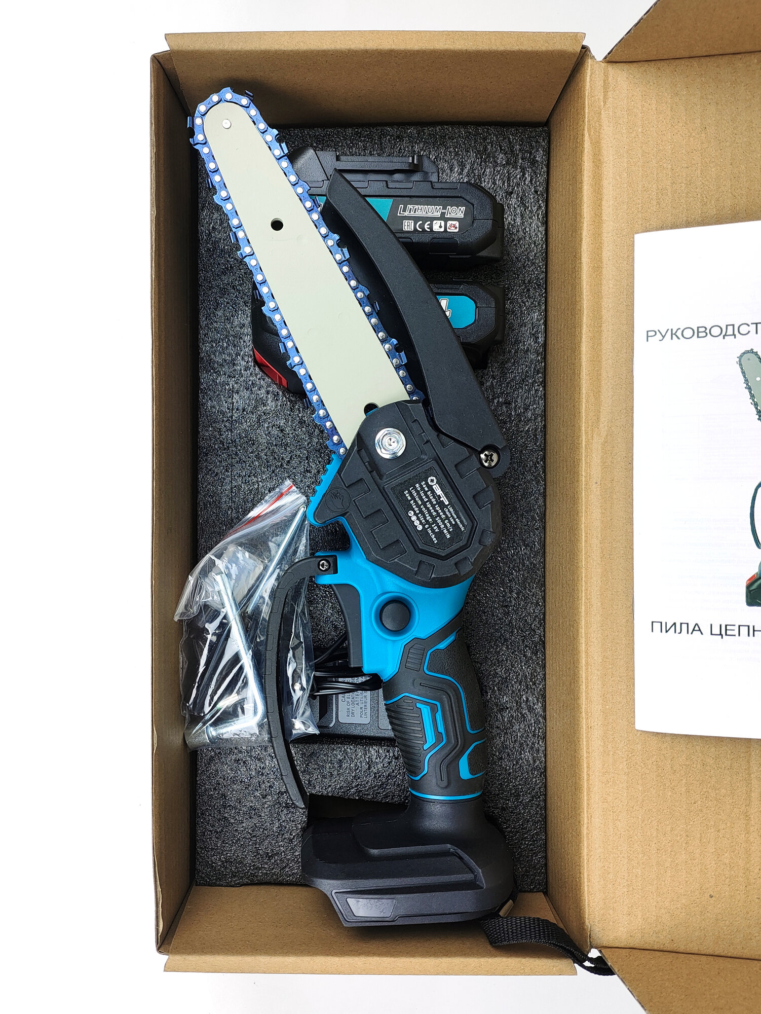 | Отзыв: | Зарядное устройство с индикацией окончания заряда. В комплекте - ключ и отвертка-перевёртыш (крест/шлиц) для сборки и натяжки цепи.