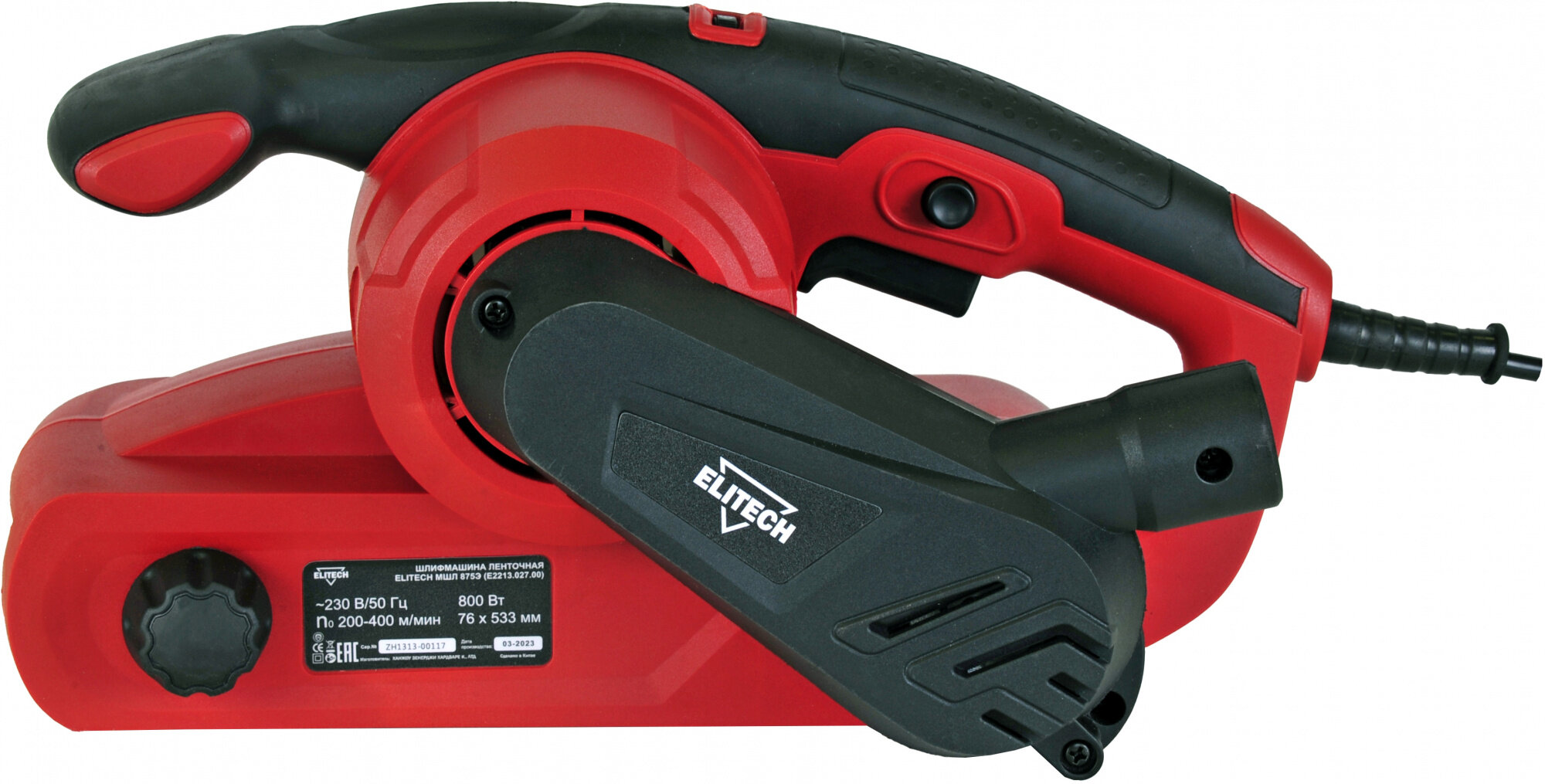 Ленточная шлифовальная машина сетевая Elitech МШЛ 800Э, 850 Вт, 75x533 мм