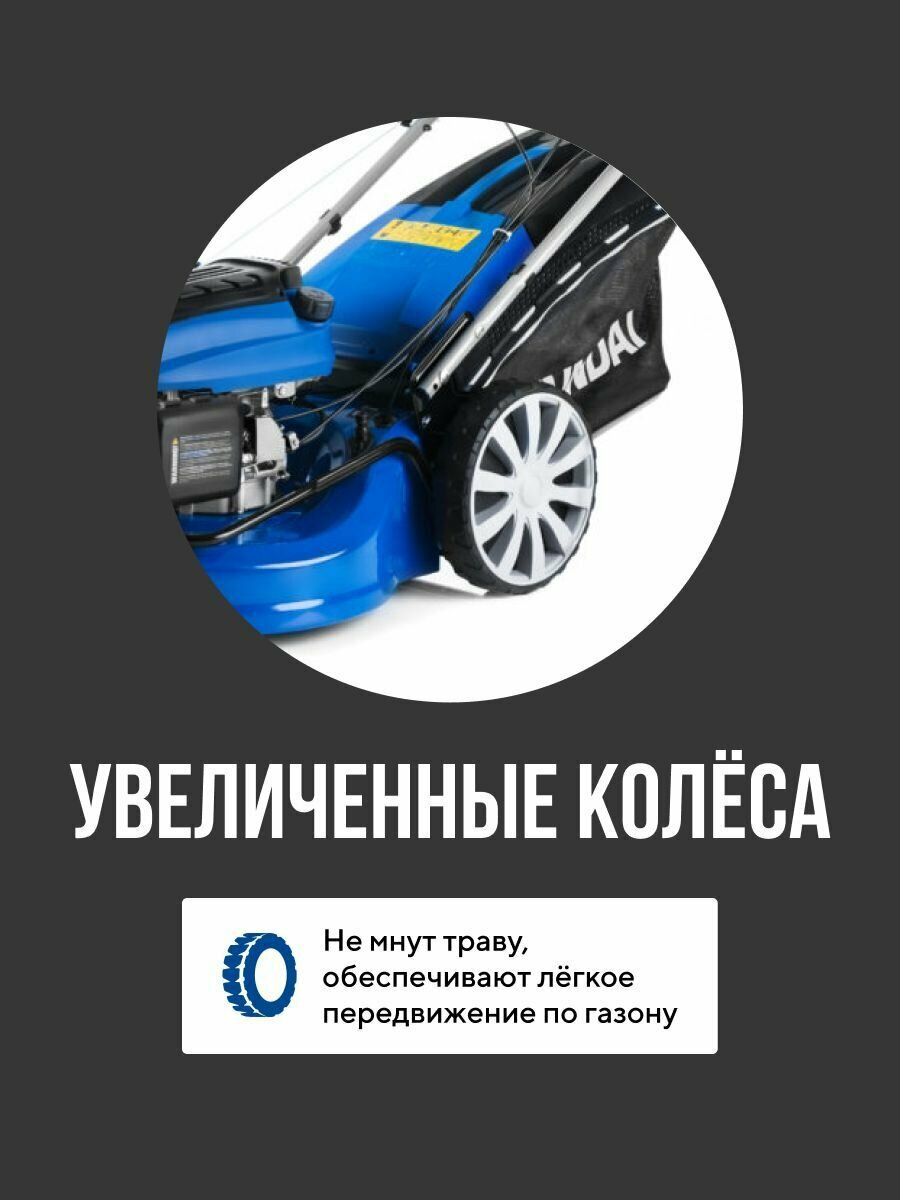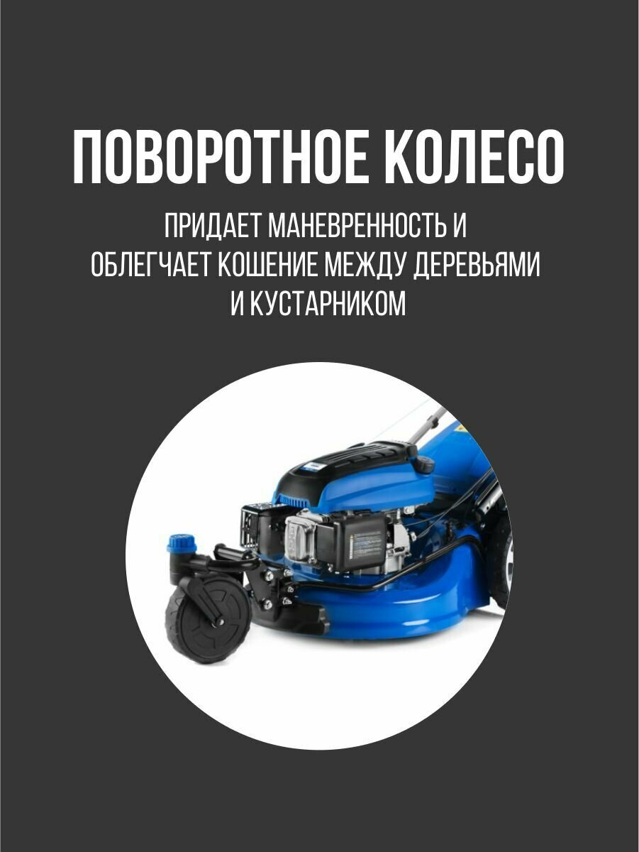 | Конструктивные особенности | плавающие колеса / регулировка ручки по высоте / складная ручка / мульчирование |