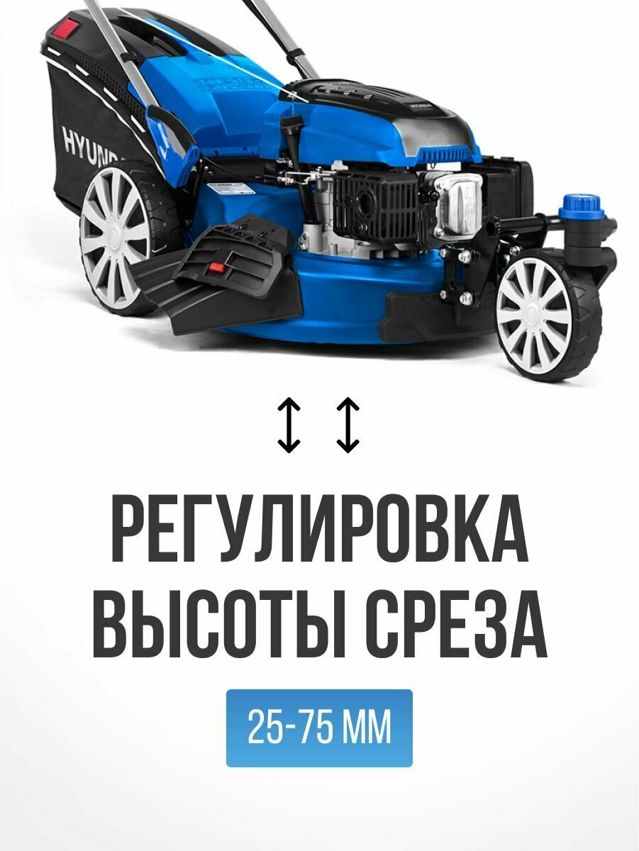 HYUNDAI [L 4620] Бензиновая газонокосилка {двигатель Hyundai ICV145,4-х такт, 3.8 л.с./145 см3, Ширина среза 45,7 см, Высота среза 25-75 мм, 23,5 кг }
