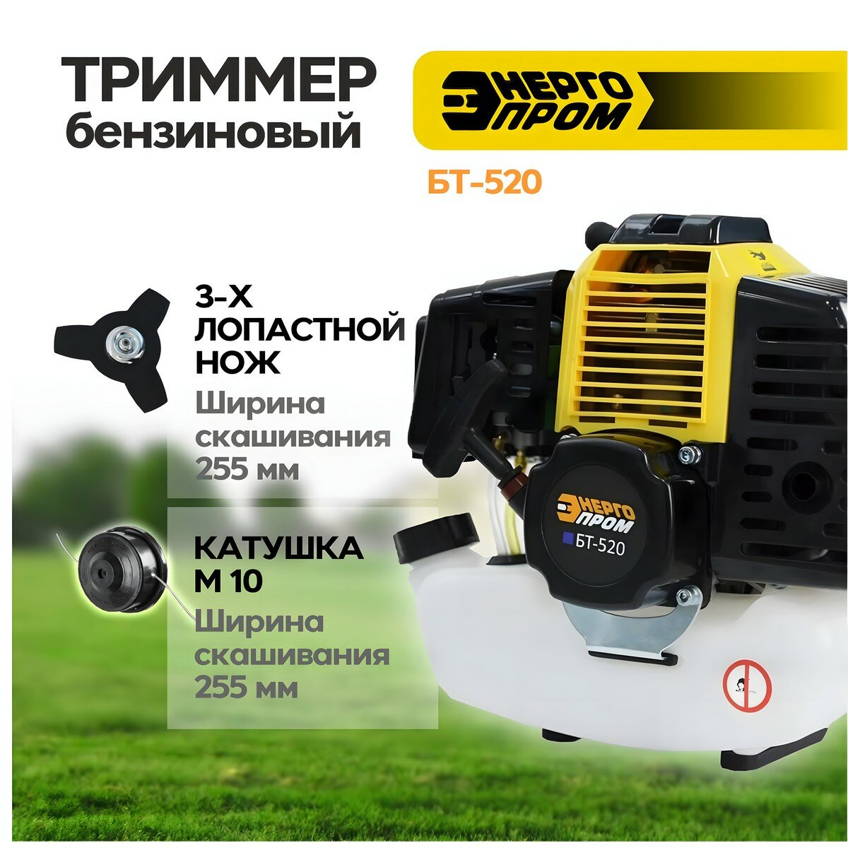 Триммер бензиновый для травы садовый (бензокоса) Энергопром БТ-520 52 куб.см, 3500 Вт, катушка/диск 3Т