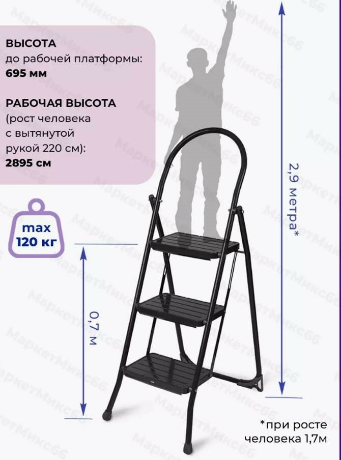 Стремянка Nika NIKA СМШ3/Ч с широкими ступенями черный