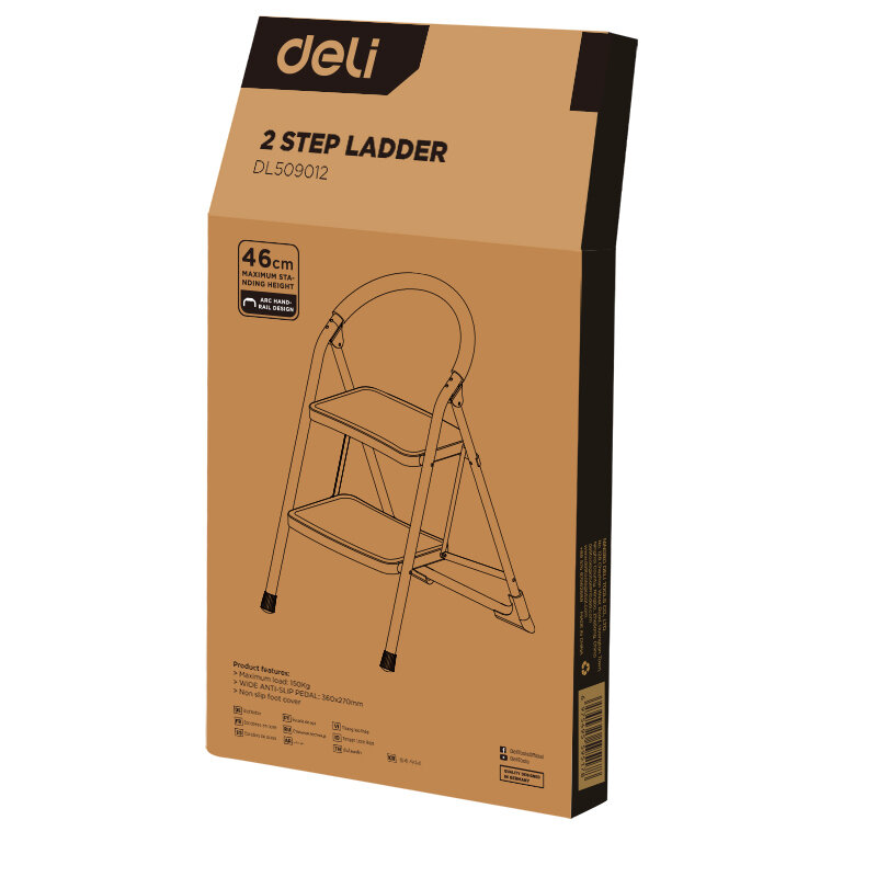 Купить Стремянка Deli DL509012 стальная двухступенчатая, максимальная высота 460мм, до 150кг