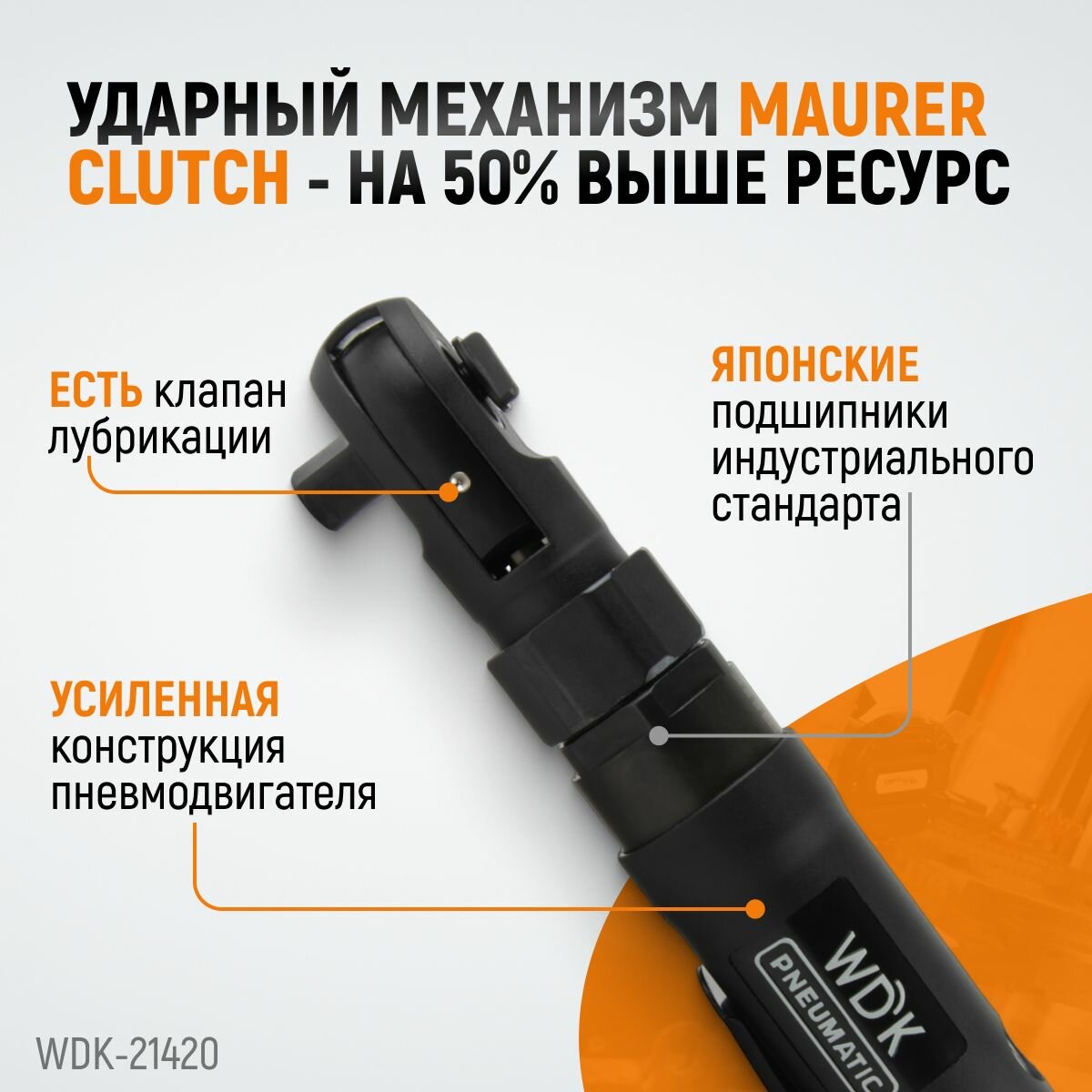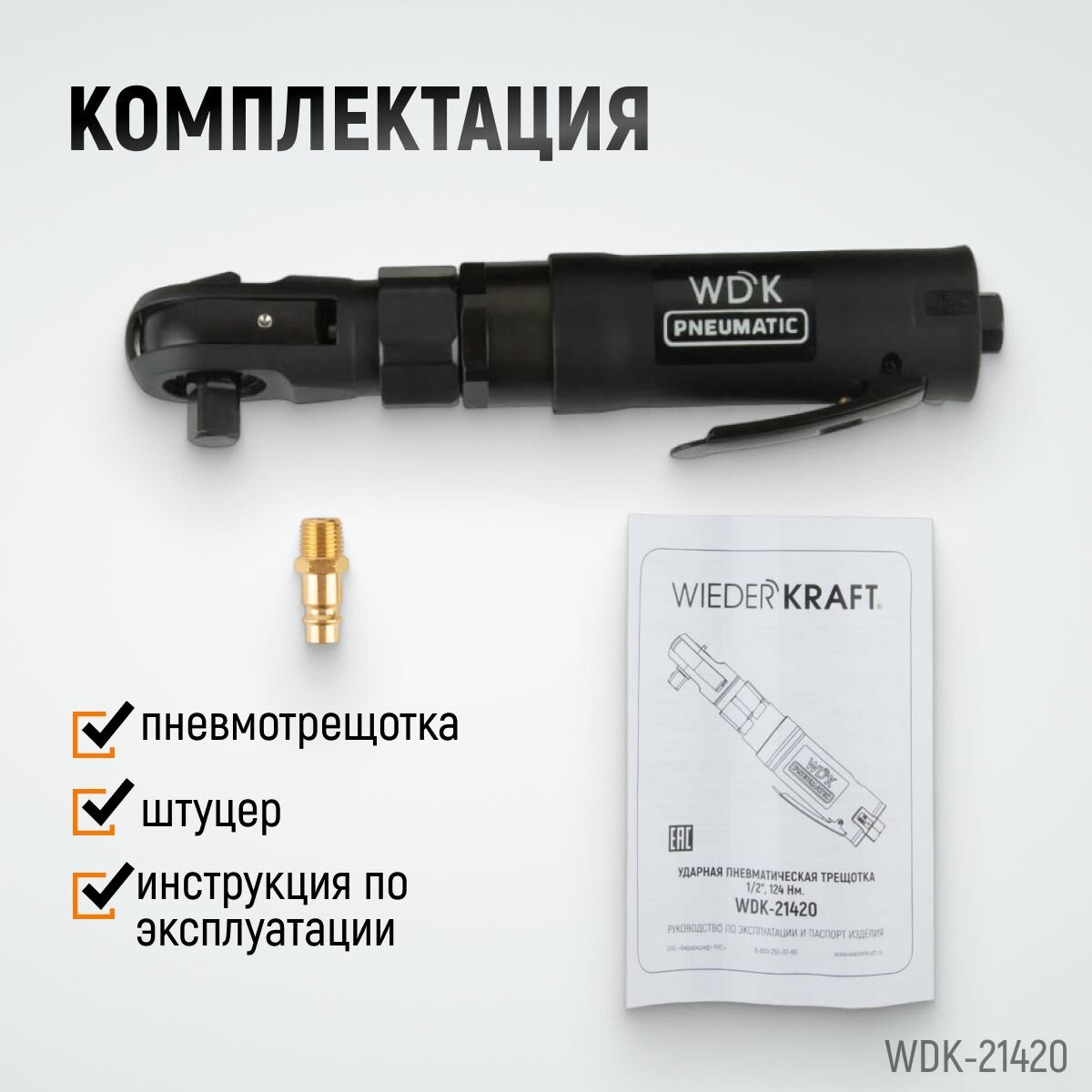 WIEDERKRAFT Ударная пневматическая трещотка 1/2", 124 нм WDK-21420 интересное: