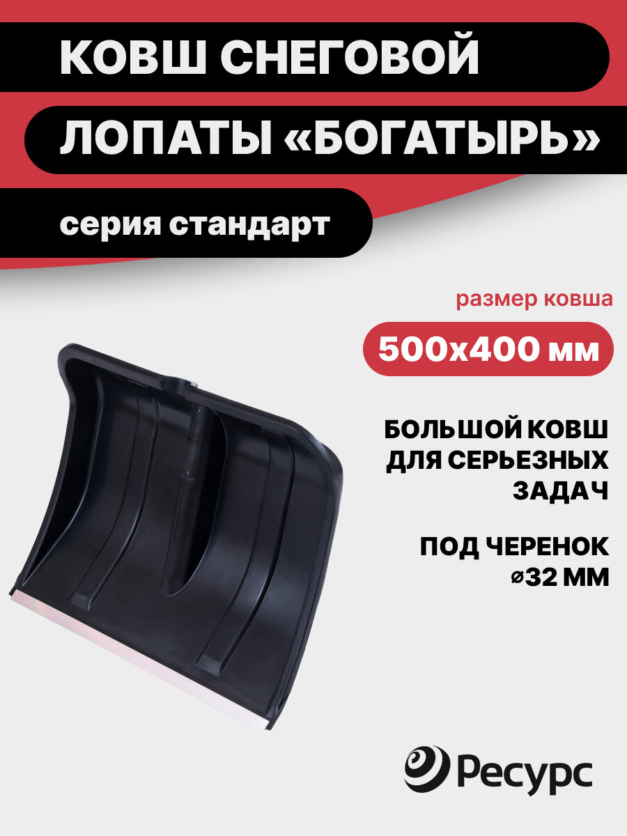 Лопата снеговая цикл Стандарт Богатырь 1137-00, пластик, 50х40см, черный
