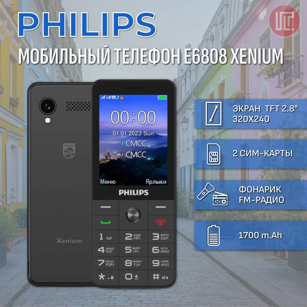 Сотовый телефон Philips E6808 черный (4G,2*SIM, 2,8",320х240,mSD до 128Gb,2Мп,1700 мАч,FM,BT,Type-C)