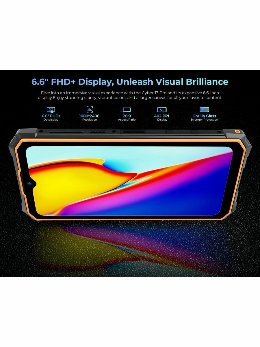 Фонарик HOTWAV Cyber 13 Pro, 20 ГБ + 256 ГБ, 6,6 дюйма, FHD + 2K, 10800 мАч, 20 Вт, быстрая зарядка, 64 мп, Android 13, глобальная версия, Cyber 13 Pro Orange, Global Version