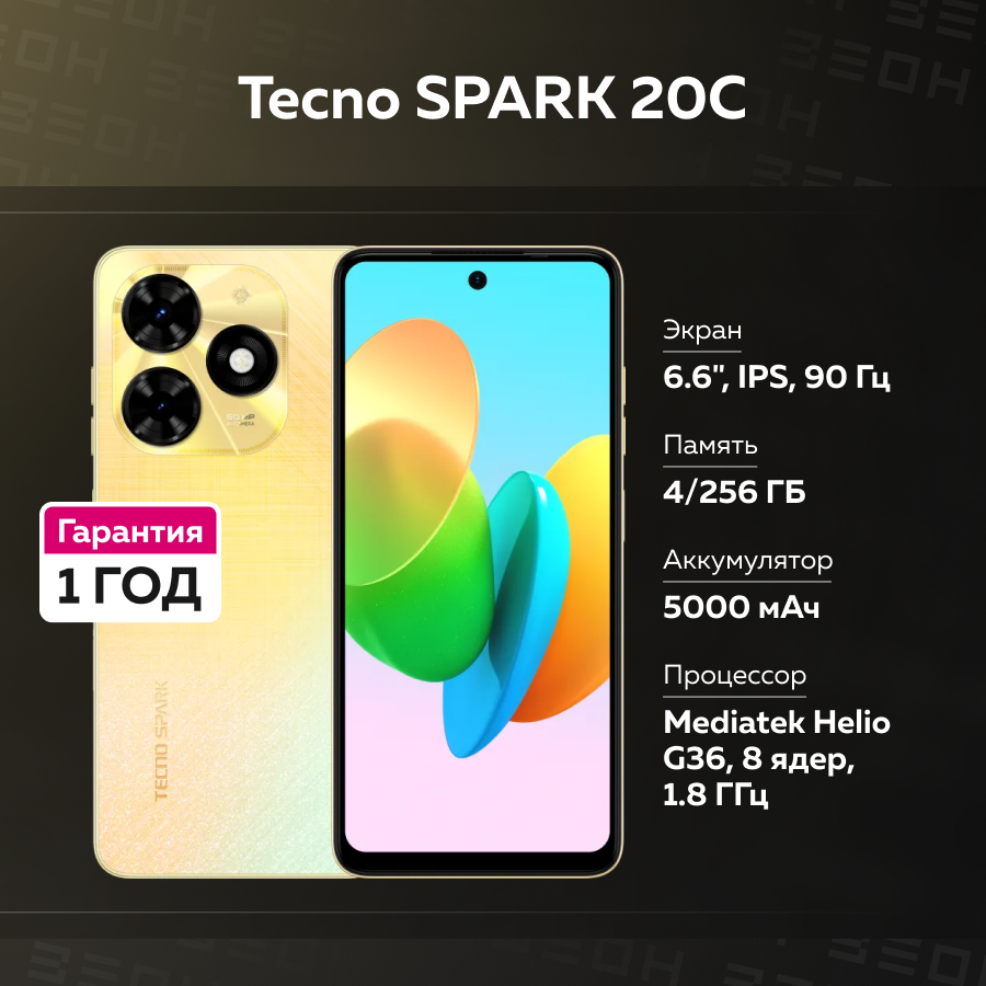 СохранитьСмартфон Tecno Spark 20C 4/256 Gold . интересное: