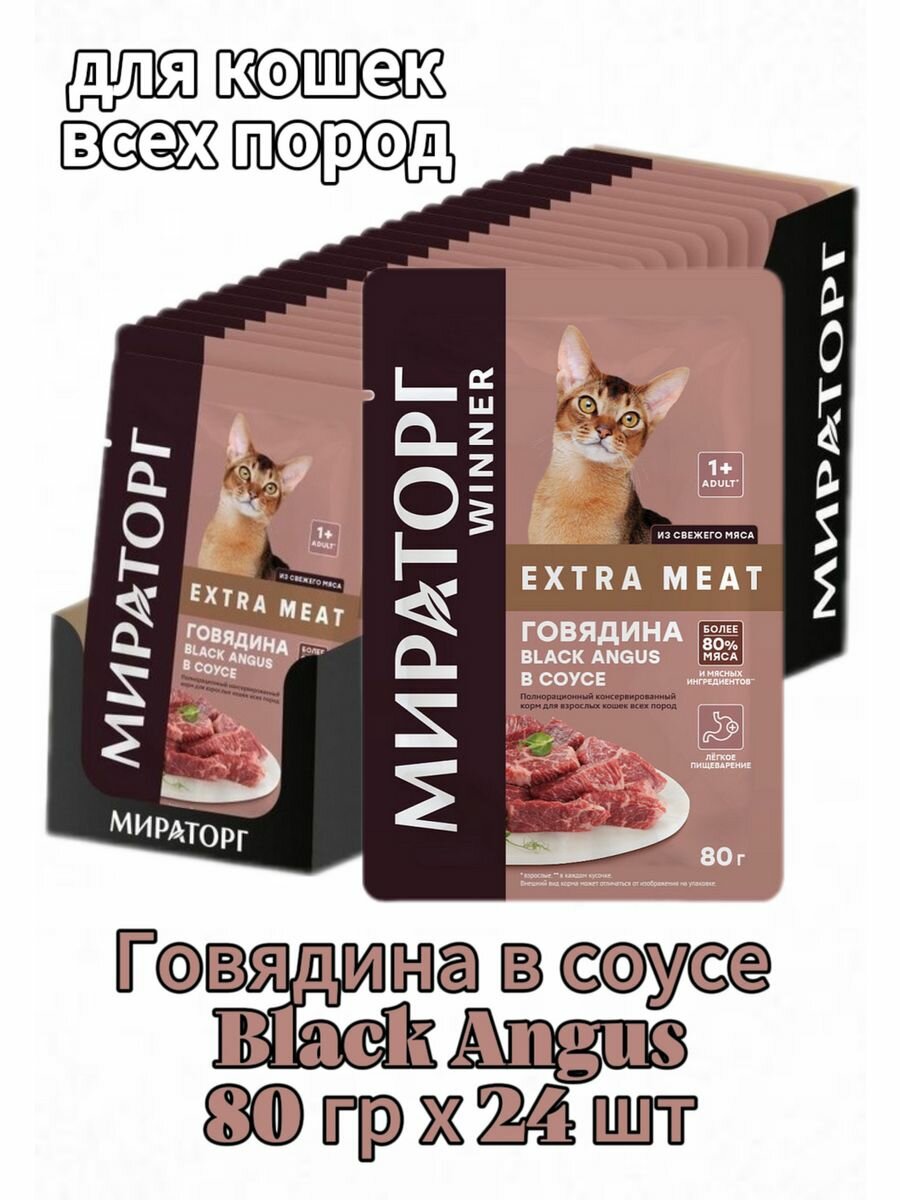 WINNER EXTRA MEAT для взрослых кошек с говядиной Black Angus в соусе (80 гр х 24 шт)
