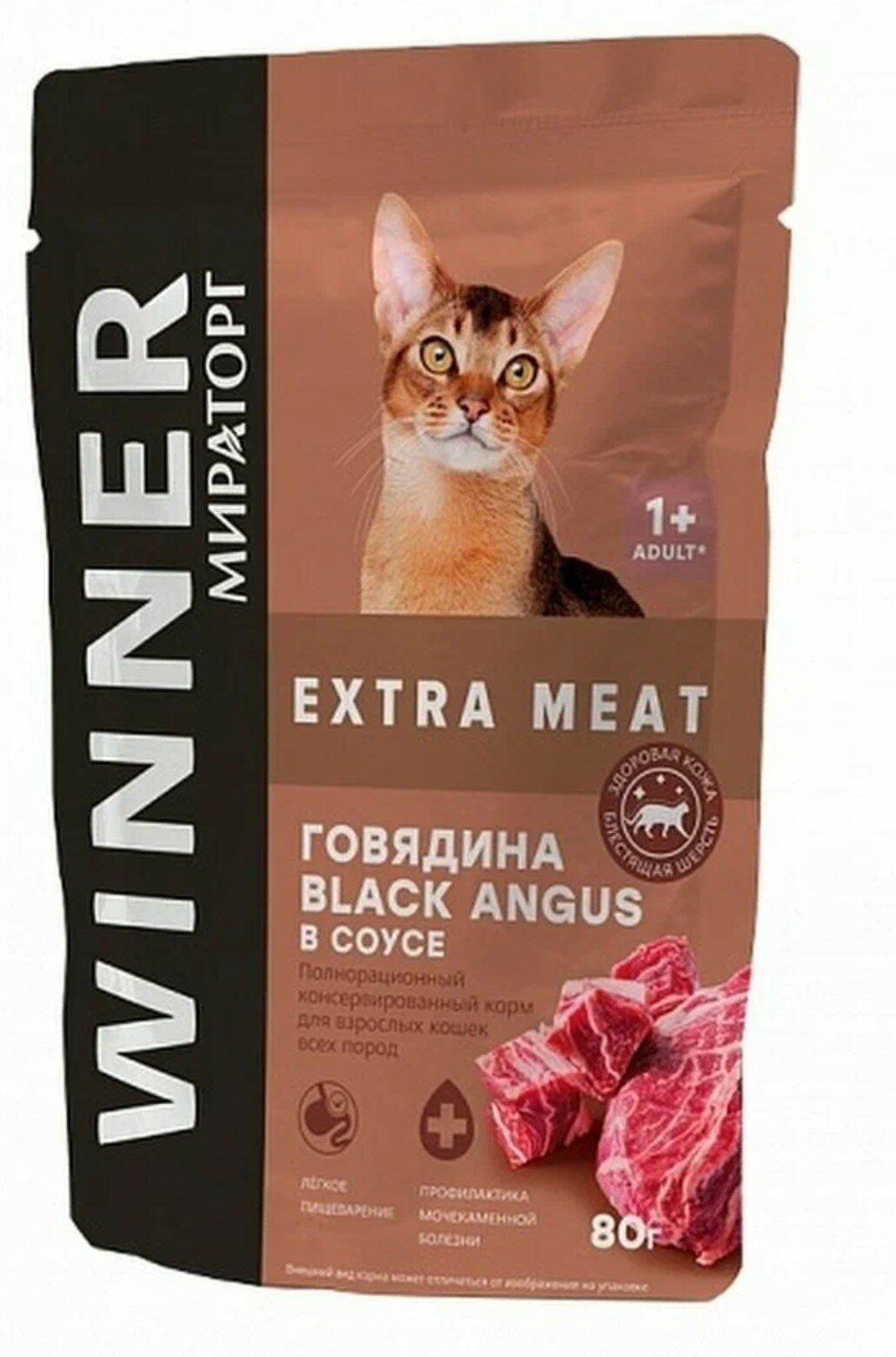 Корм влажный WINNER EXTRA MEAT для взрослых кошек с говядиной Black Angus в соусе 24шт по 80гр