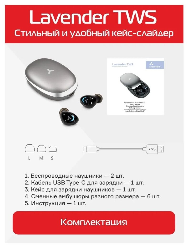 Беспроводные наушники Accesstyle Lavender TWS Gray, внутриканальные интересное: