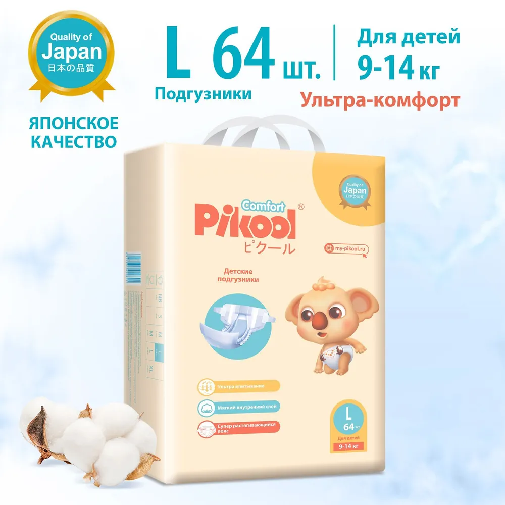 Купить Подгузники детские Pikool Comfort, размер L, 9-14 кг, 64 шт