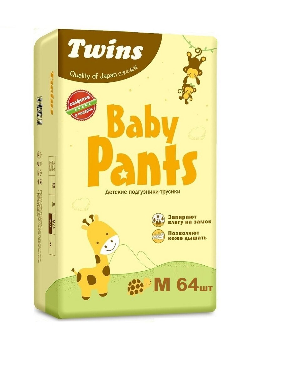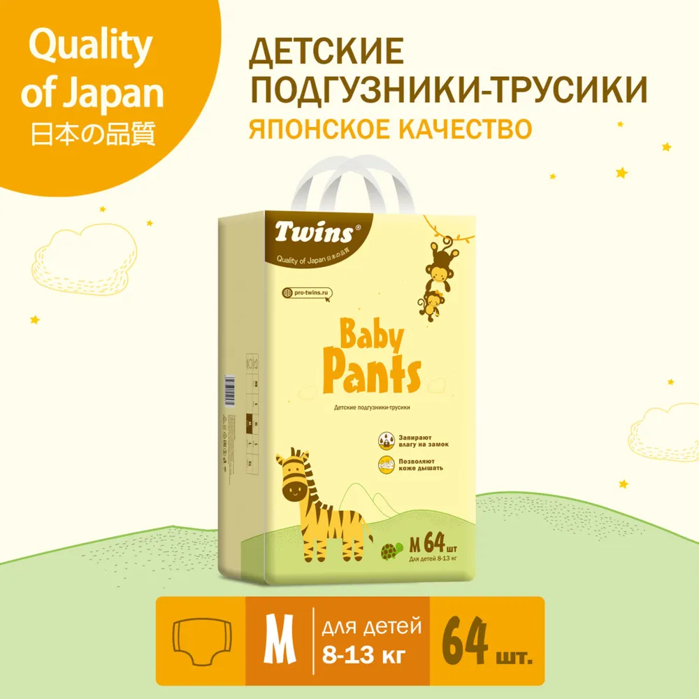 Твинс / Подгузники-трусики детские Twins M (8-13 кг) 64 штуки / дешевые памперсы трусы детские интересное: