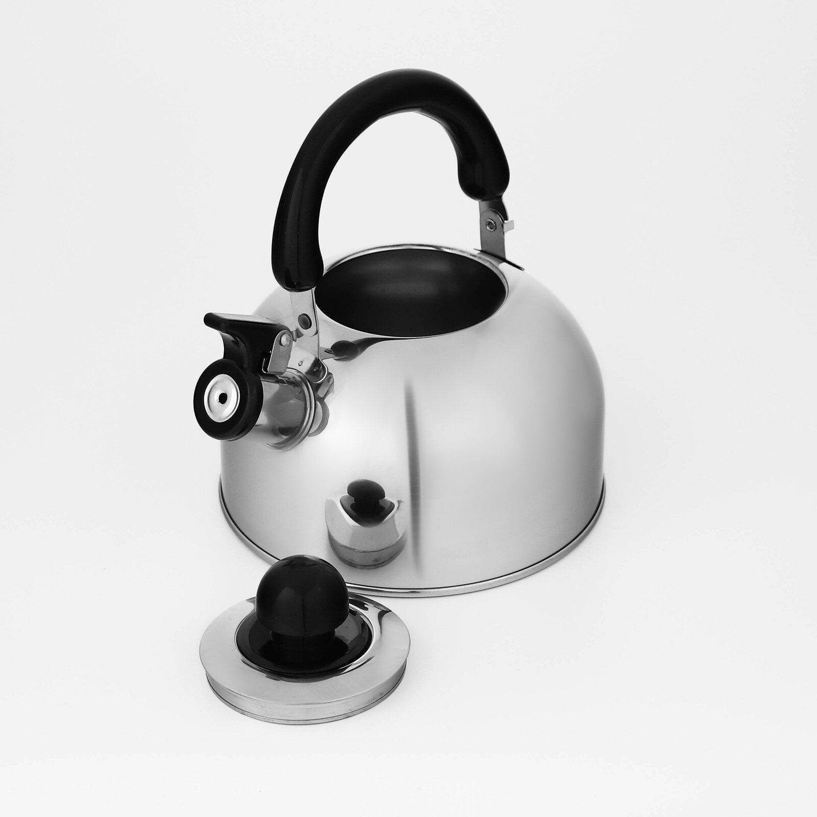 Чайник со свистком из нержавеющей стали «Чёрная ночь», 2 л, цвет хромированный