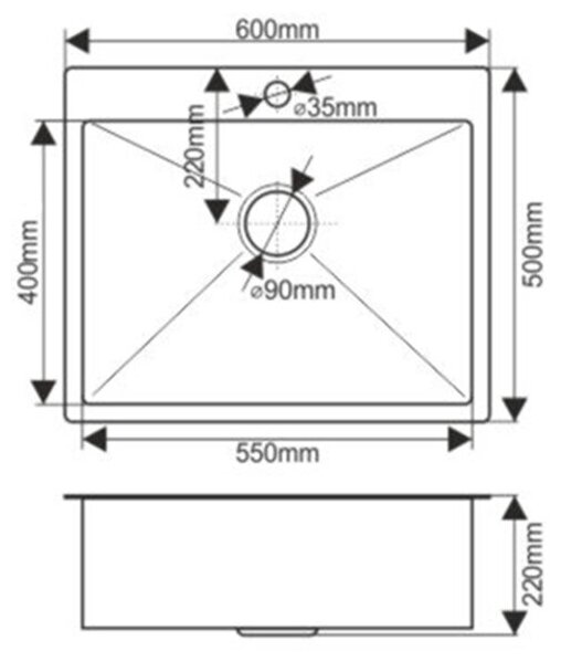 Мойка из нержавеющей стали врезная 60х50 см