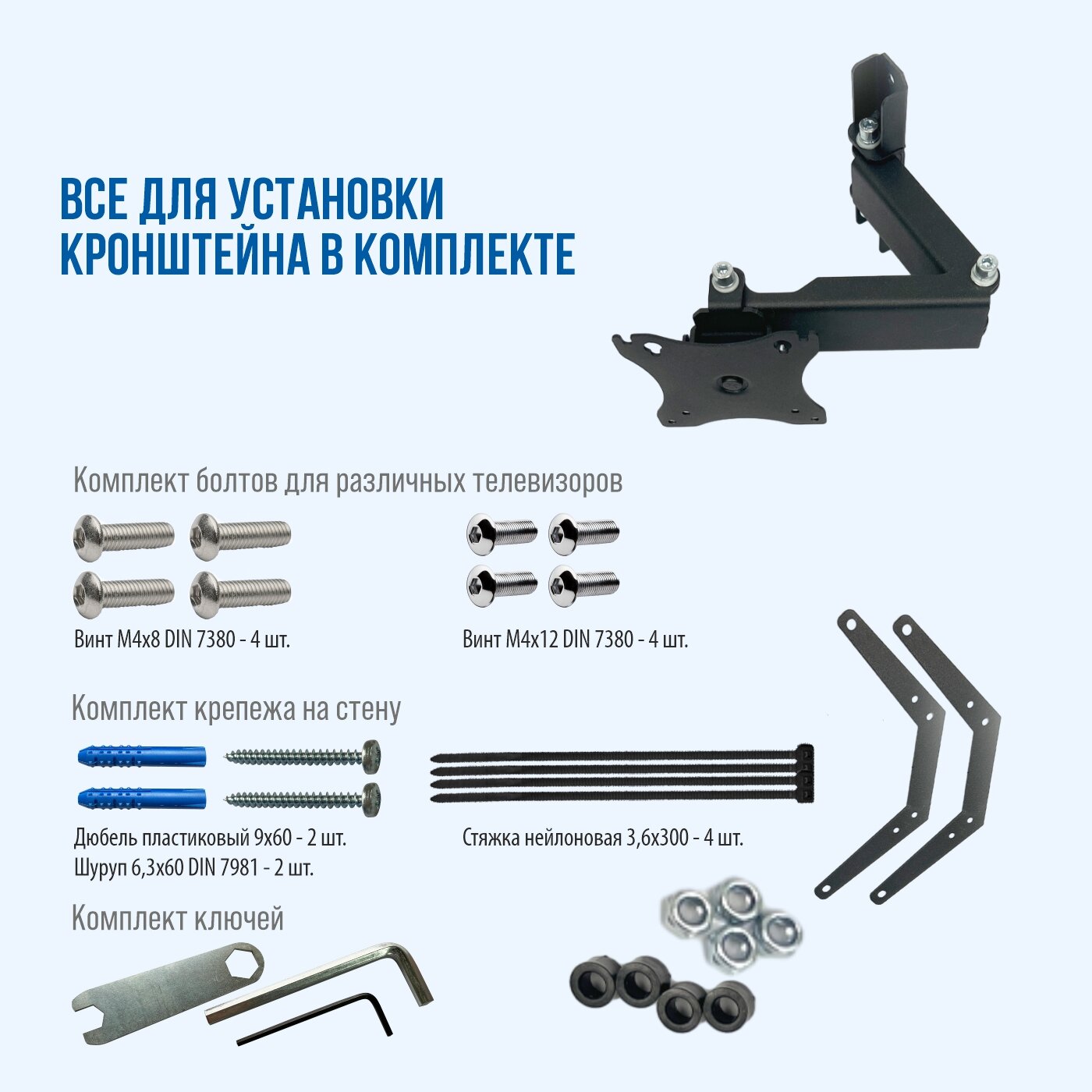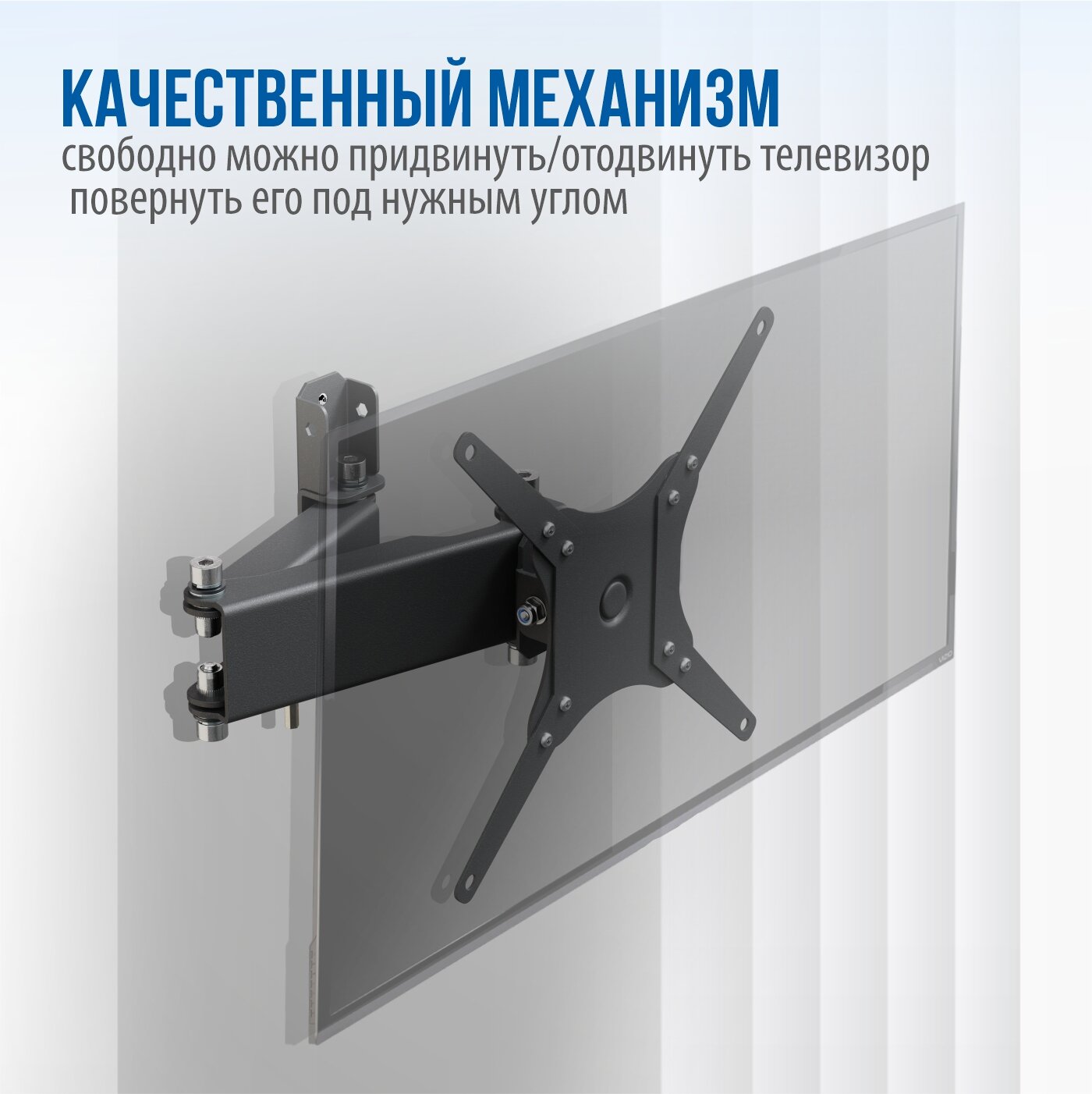 Надежный настенный кронштейн РЭМО K-543, наклонно-поворотный 15"-43", крепление VESA 75*75, 100*100 и 200*200 мм