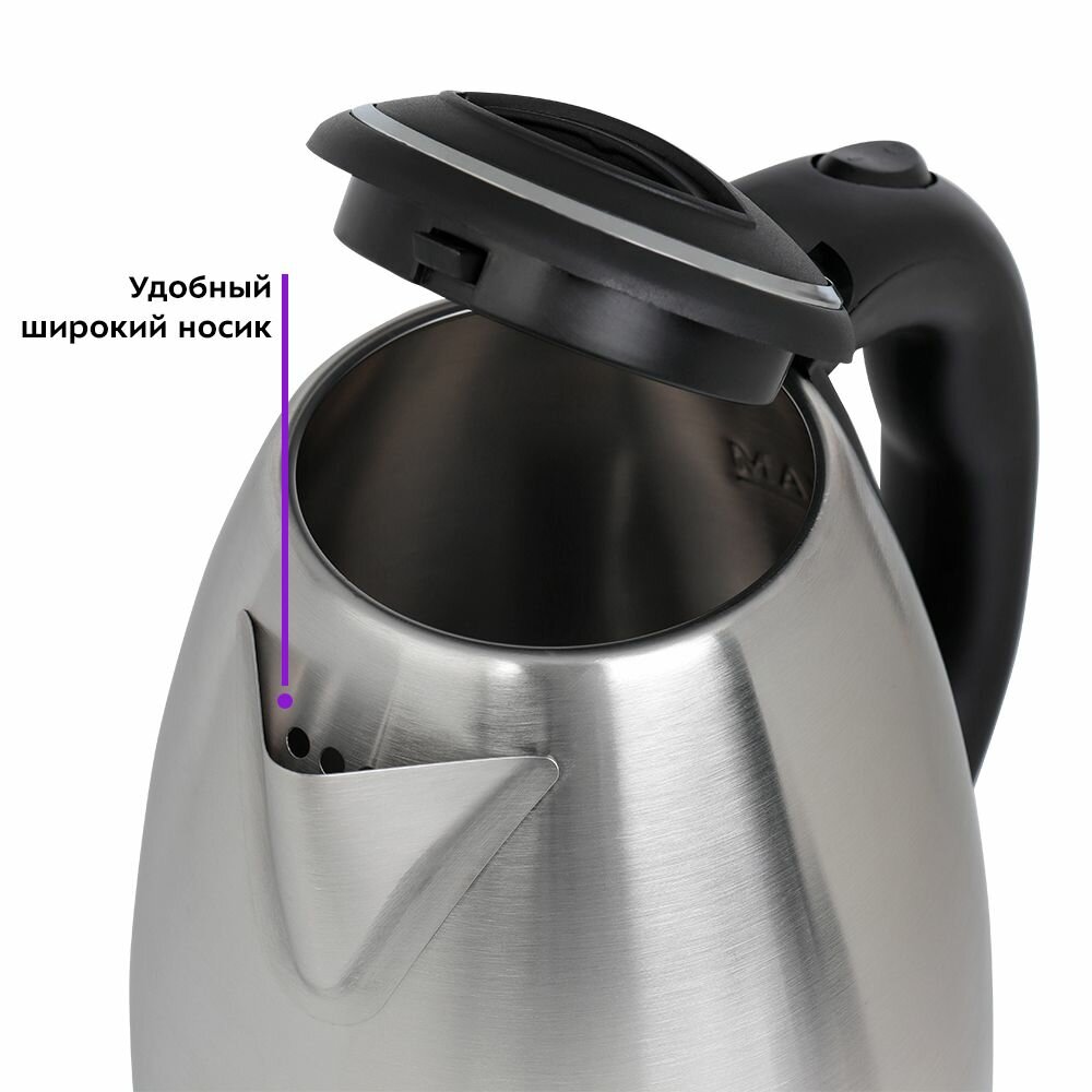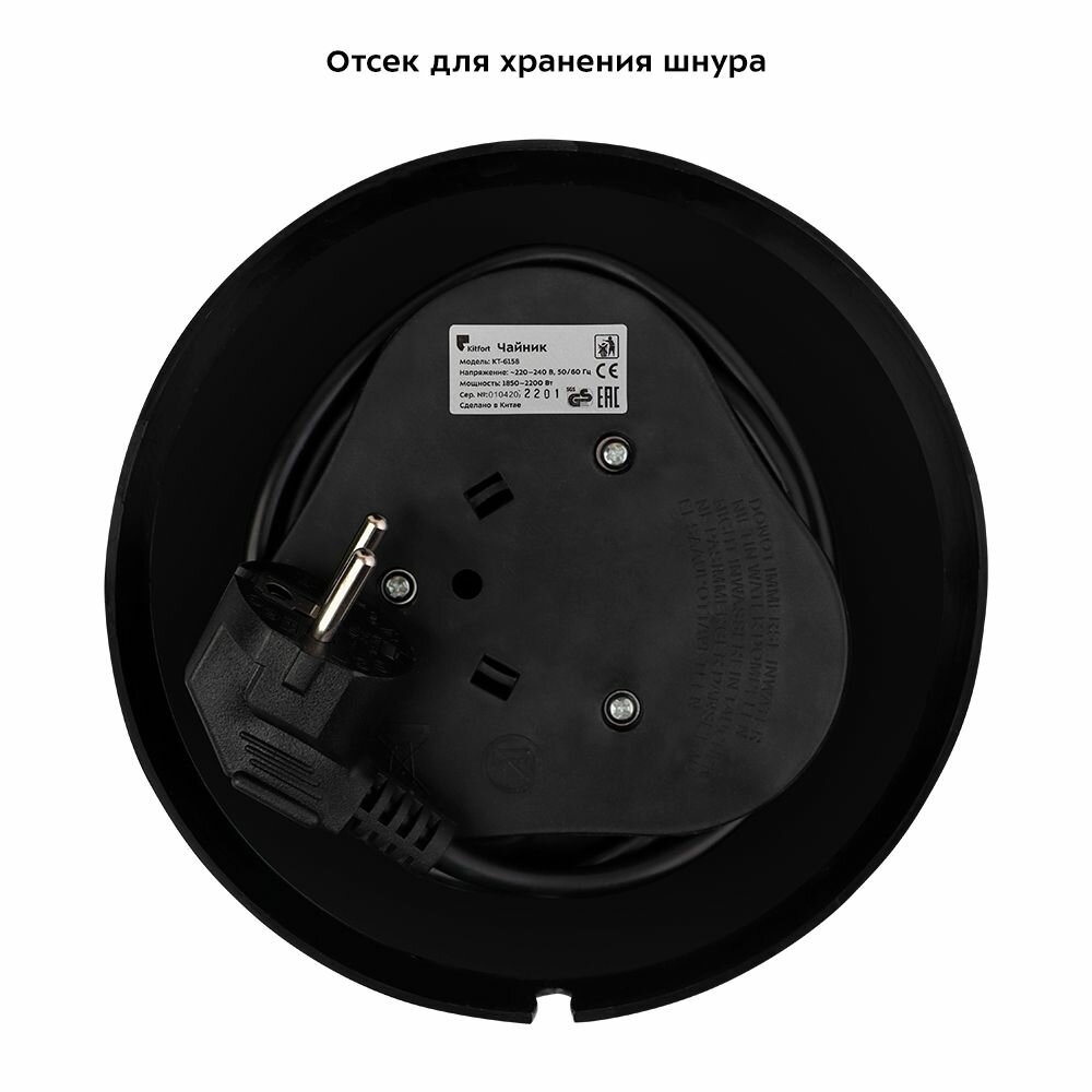 Чайник электрический KitFort КТ-6158, 2200Вт, нержавеющая сталь и черный интересное:
