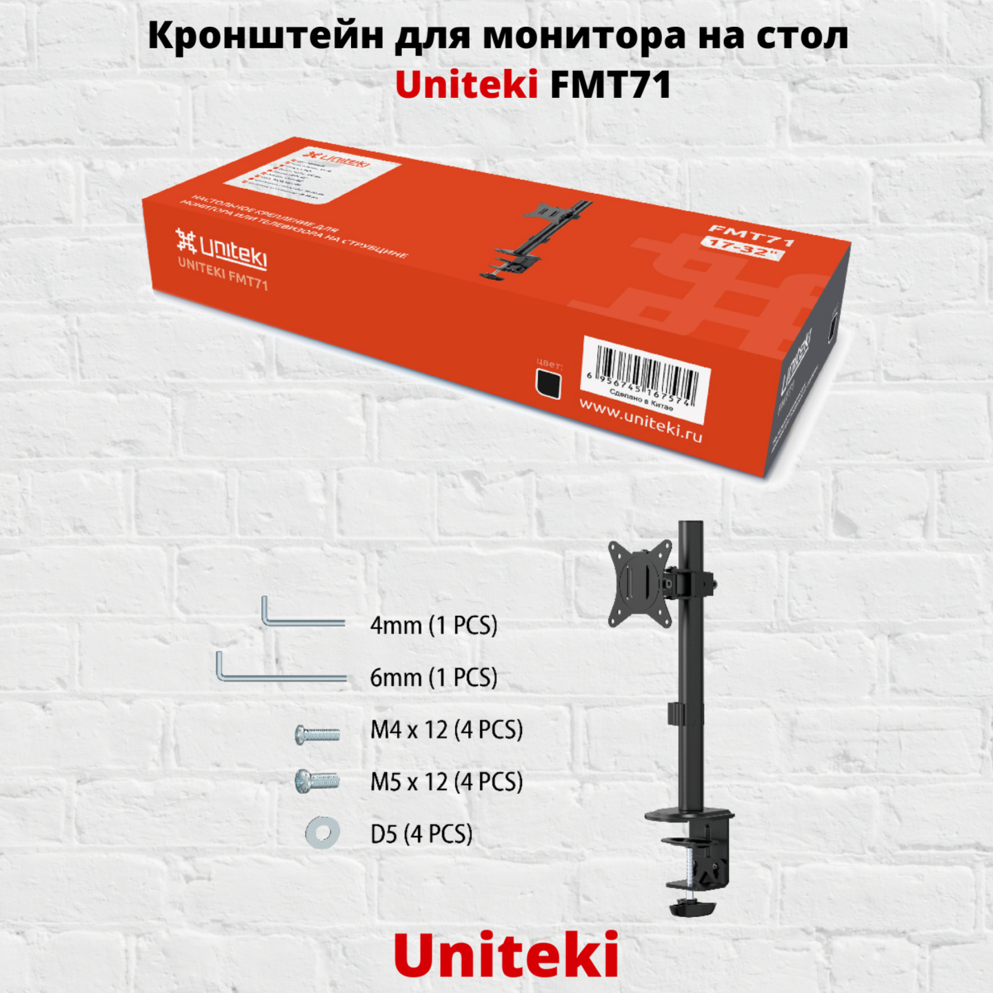 Настольный телескопический поворотно-наклонный кронштейн для монитора Uniteki FMT71