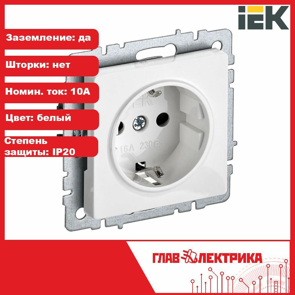 IEK BRITE Розетка 1-местная с заземлением без защитных шторок 16А РС11-1-0-БрБ белый