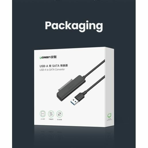 Конвертер UGREEN CM321 (70609) USB-A to 2.5-Inch SATA Converter. Длина 50 см. Цвет: черный