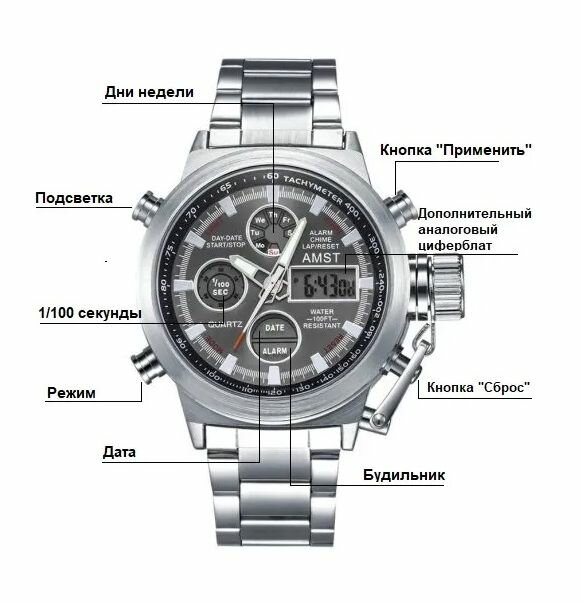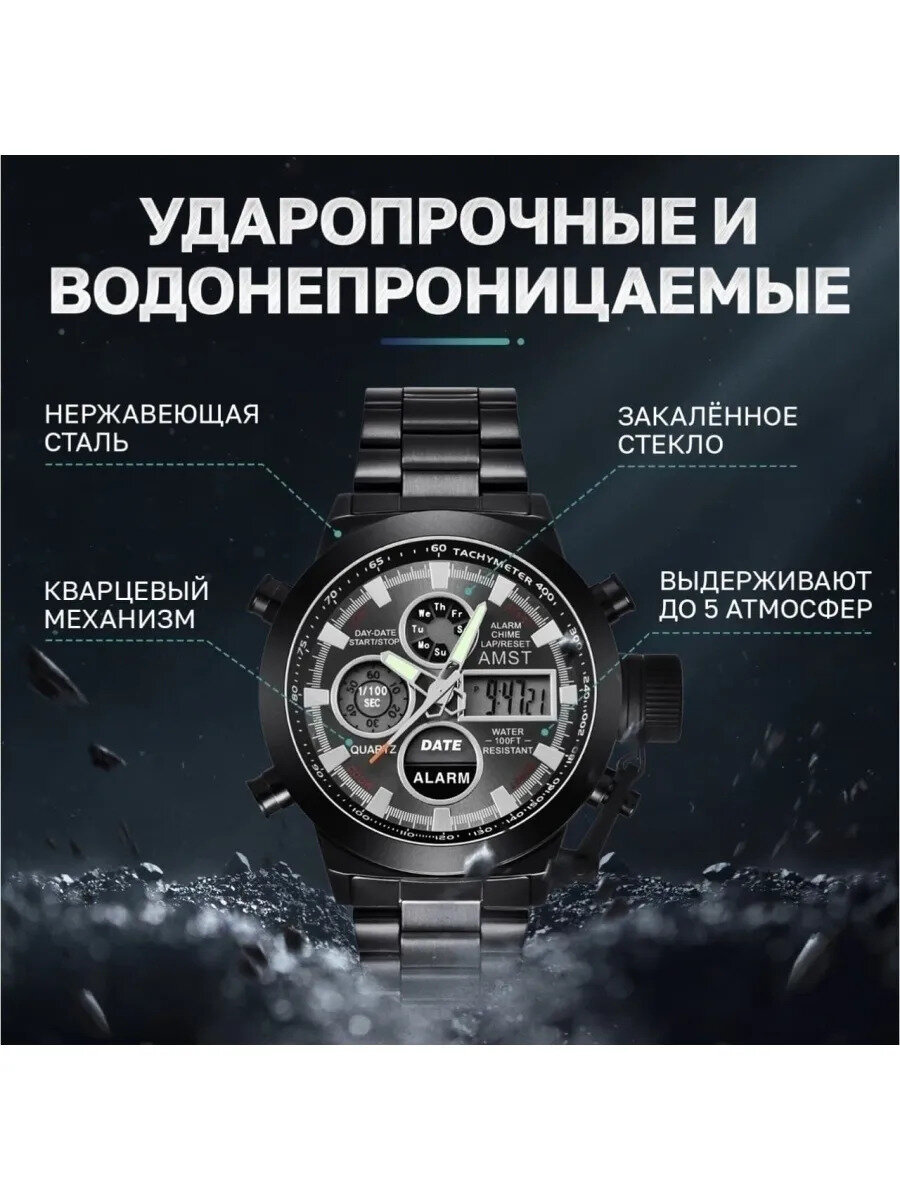 Армейские часы AMST 3003 (Стальной темный браслет) интересное:
