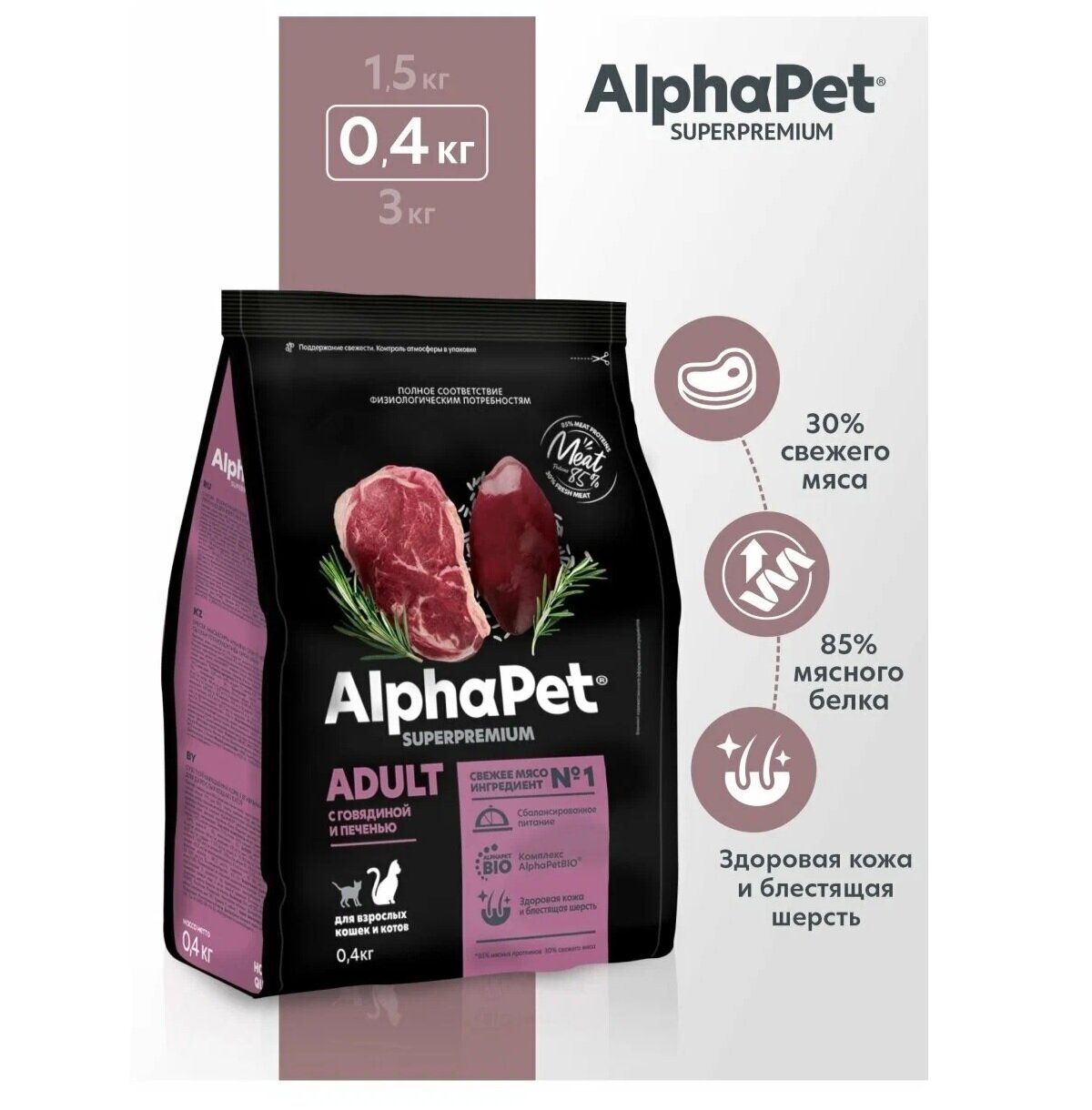AlphaPet Superpremium (АльфаПет) 0,4кг с говядиной и печенью сухой корм для домашних кошек (650815)