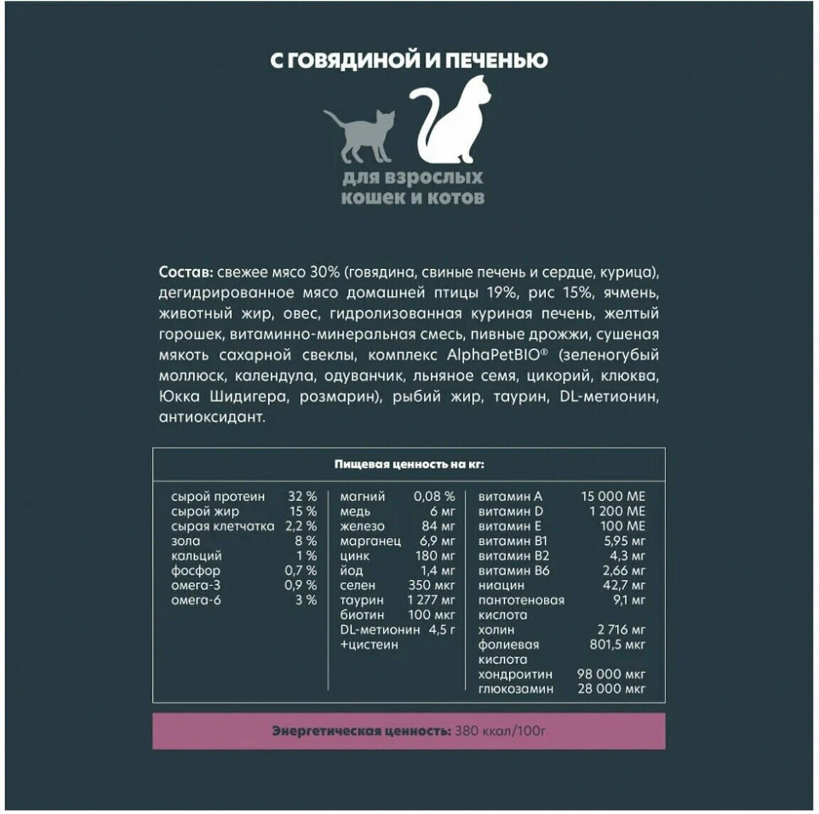 Сухой корм для кошек AlphaPet Superpremium с говядиной и печенью, 1,5кг