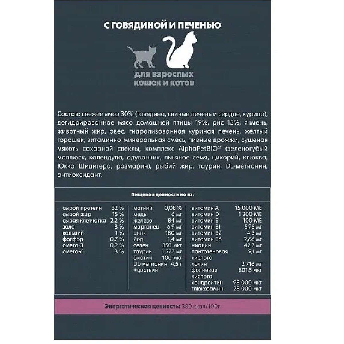 AlphaPet Superpremium (АльфаПет) корм для кошек с говядиной и печенью 1,5кг