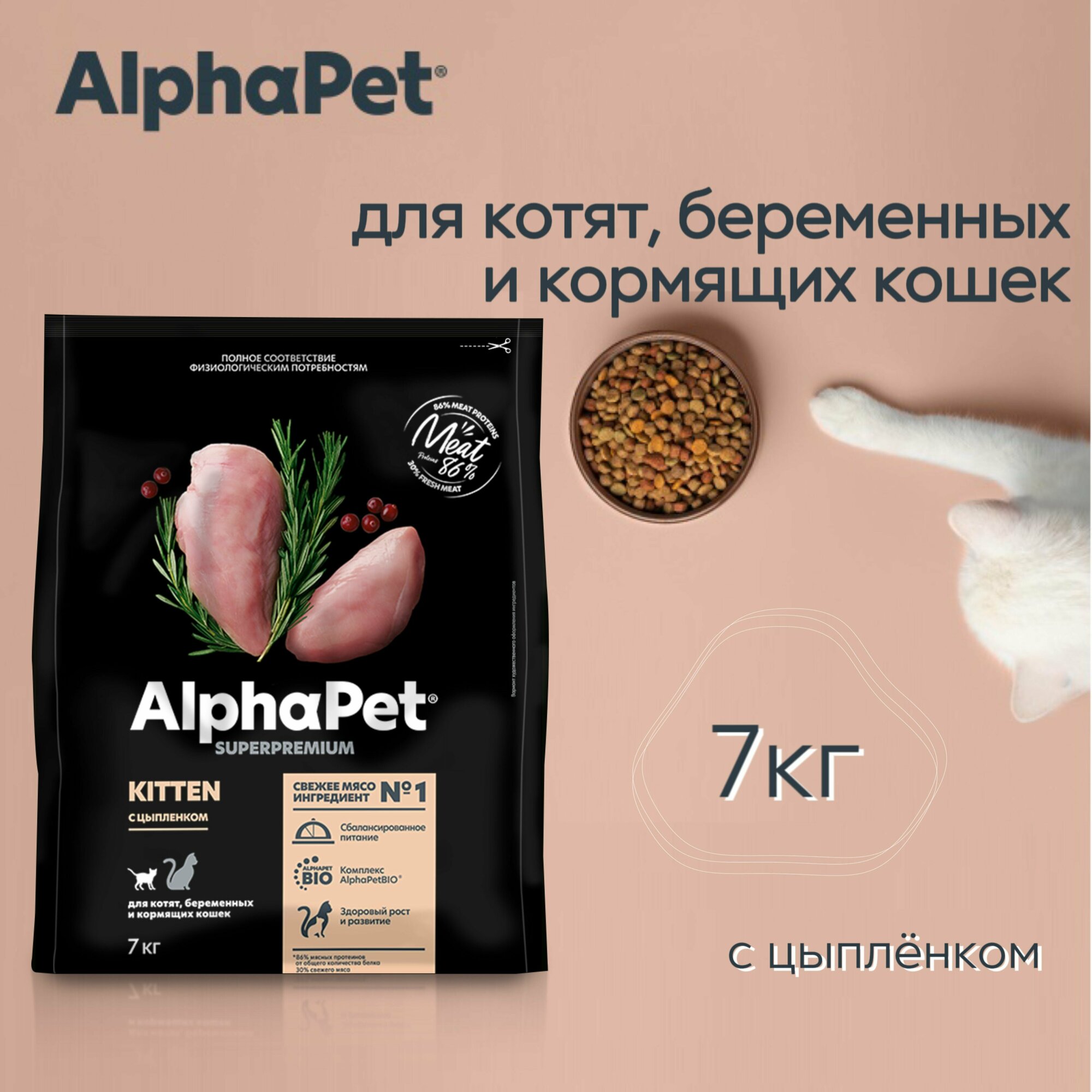 ALPHAPET сухой для котят, беременных и кормящих кошек с Цыпленком 7кг