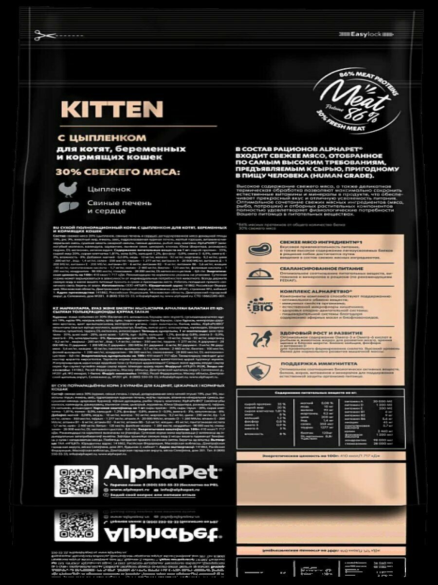ALPHAPET SUPERPREMIUM Сухой корм для котят, беременных и кормящих кошек с Цыпленком