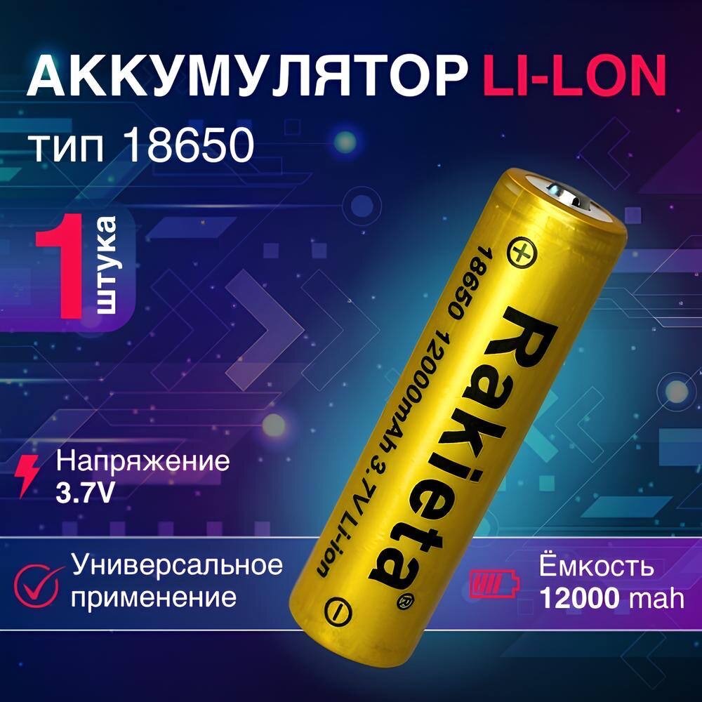 Батарейки аккумуляторные 18650 1 шт/ аккумулятор 18650 3.7V 12000mAh Li-ion Rakeita, 1 шт