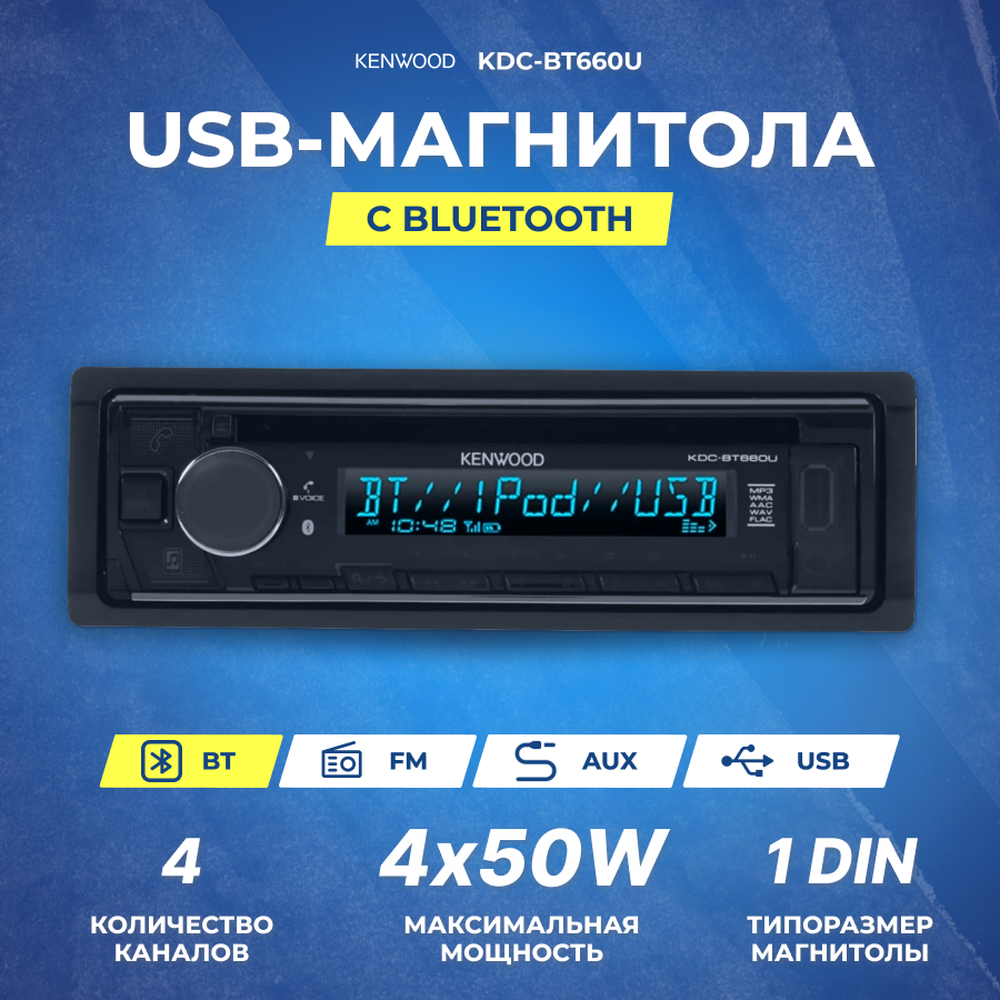 Ниже Вы можете прочитать отзывы на Автомагнитола KENWOOD KDC-BT660U, черный, ознакомится с подробными характеристиками, посмотреть интересные обзоры и фотографии на Автомагнитола KENWOOD KDC-BT660U, черный.