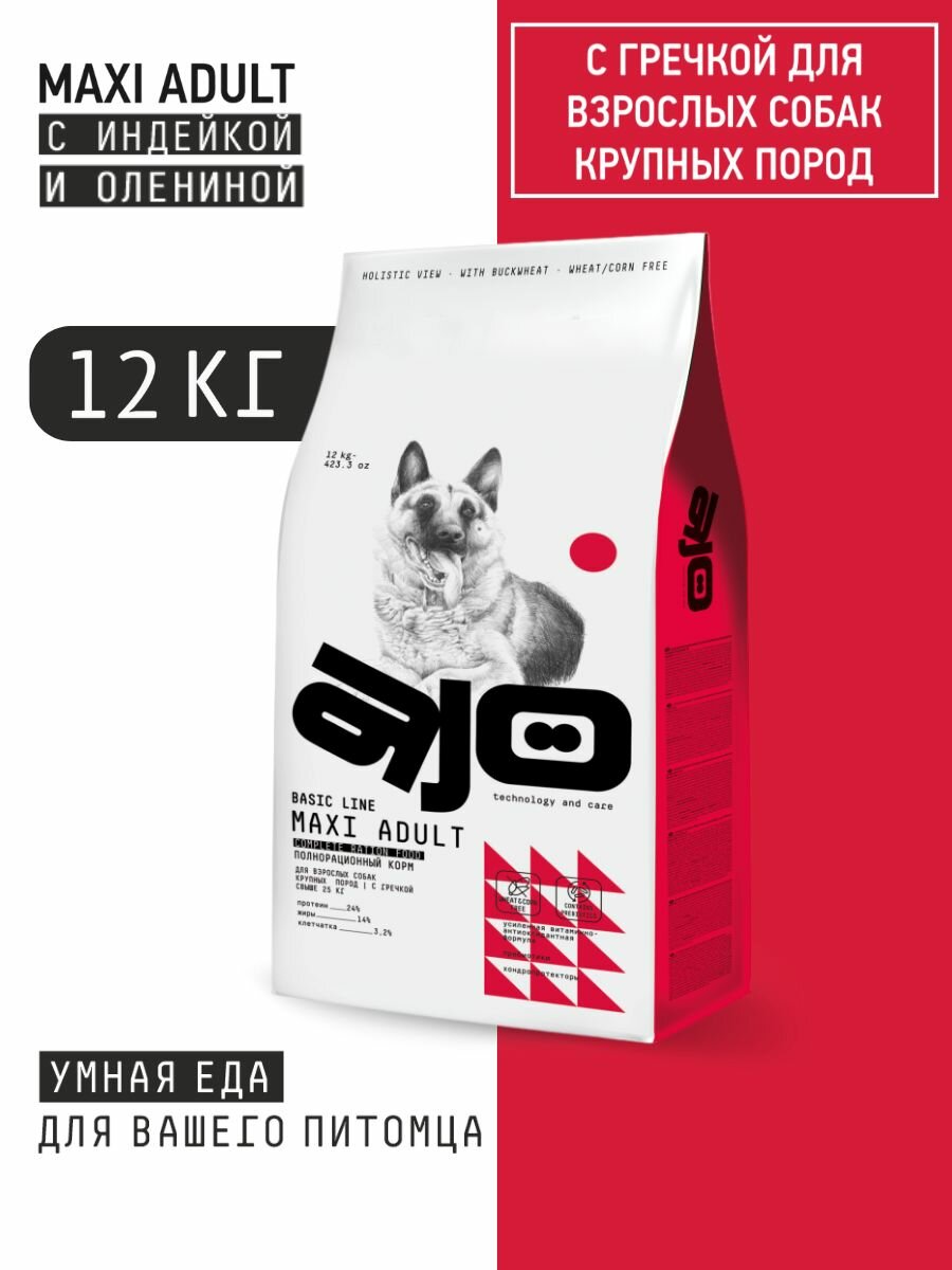 AJO Dog Maxi Adult Сухой полнорационный корм с гречкой для взрослых собак крупных пород 12 кг