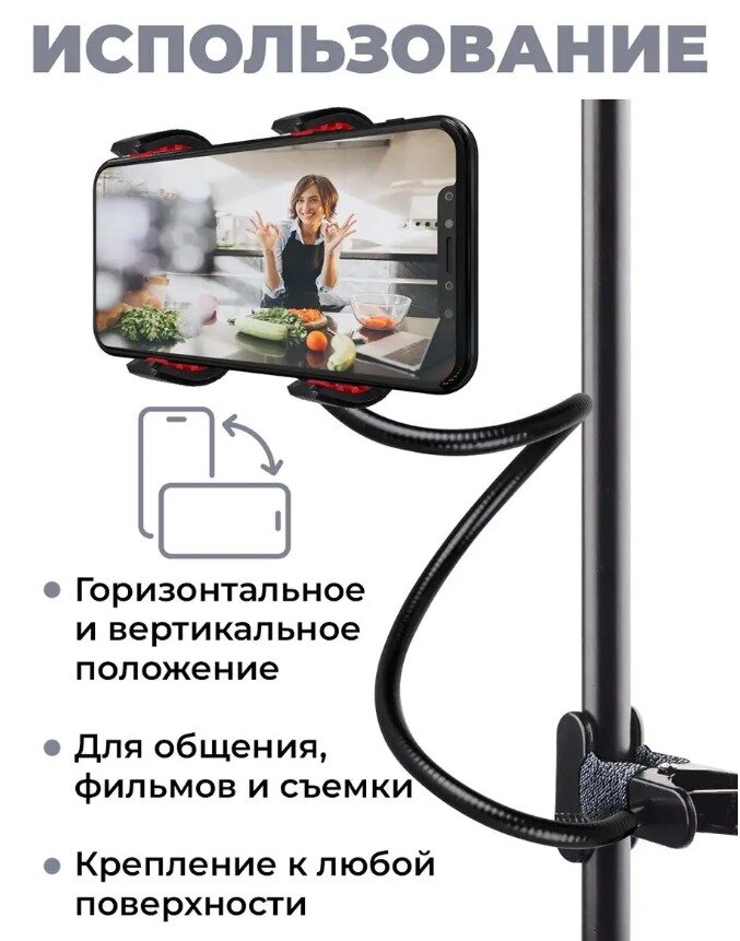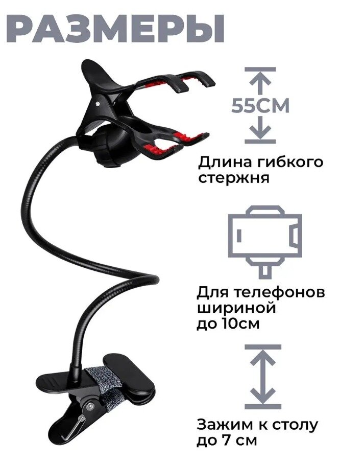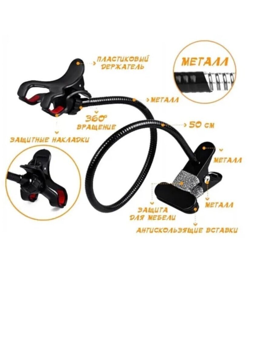 Держатель для телефона гибкий универсальный с прищепкой