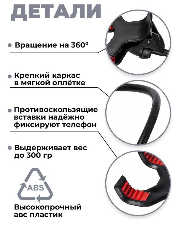 | Минусы: | Не удерживает телефон. Слабая сгибающая ножка |