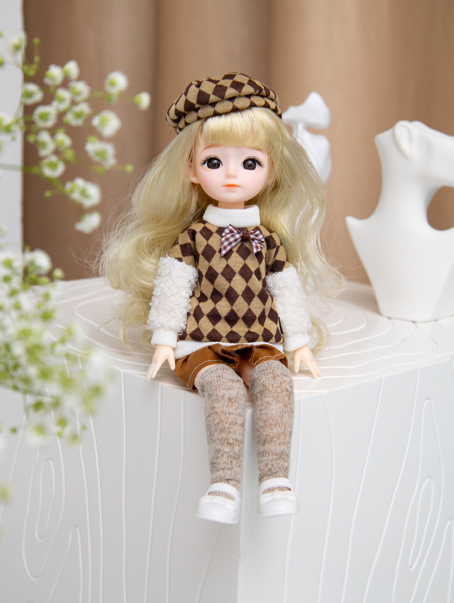 | Дополнительная информация | Ручки, ножки двигаются. 23 сустава подвижны. Волосы можно расчесывать, пришиты по всей голове. Качественная одежда и шляпка |