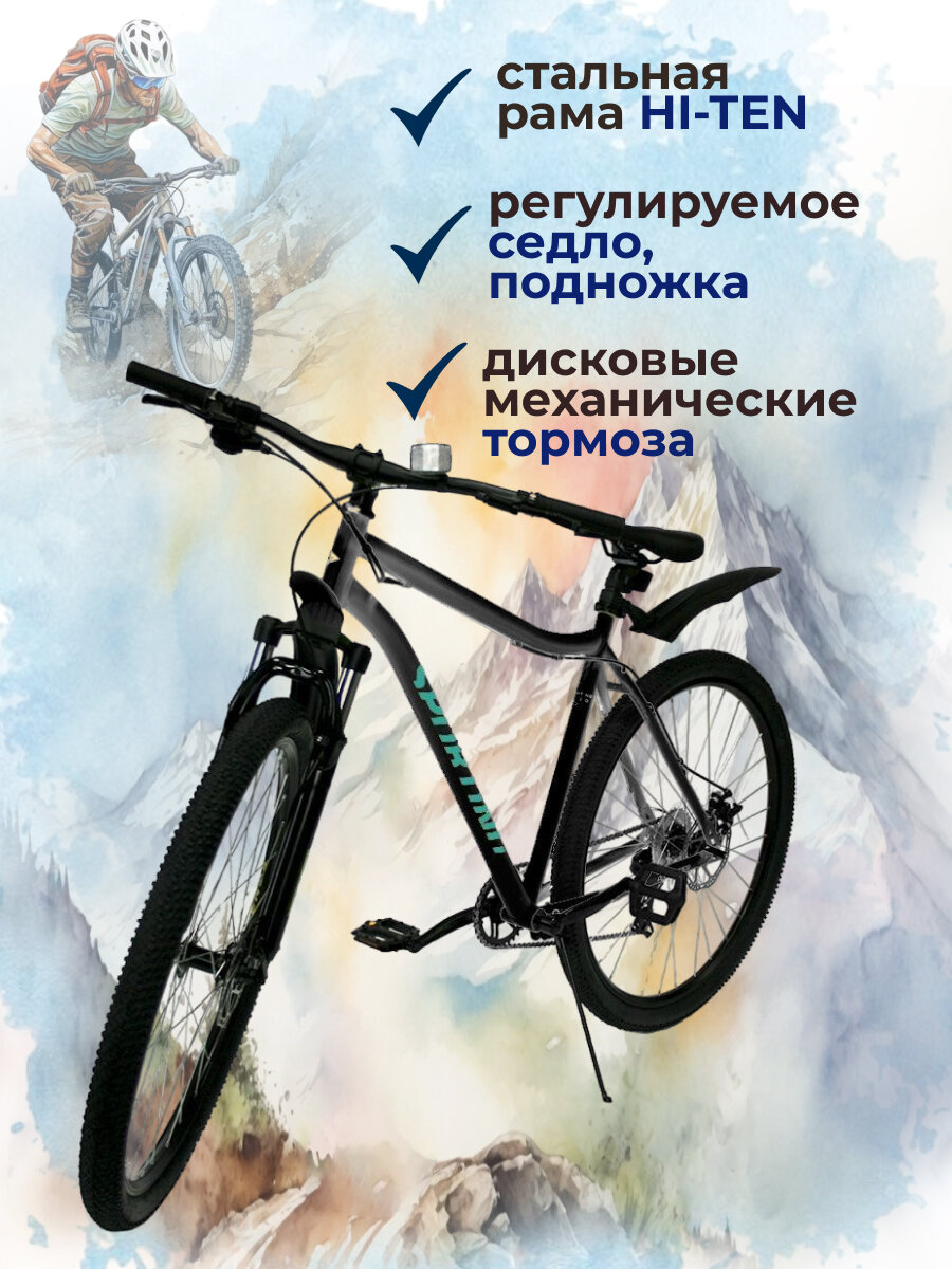 Горный велосипед SPORTING 29 2.0 D, 29", рост 17", 8 скоростей, черный/бирюзовый