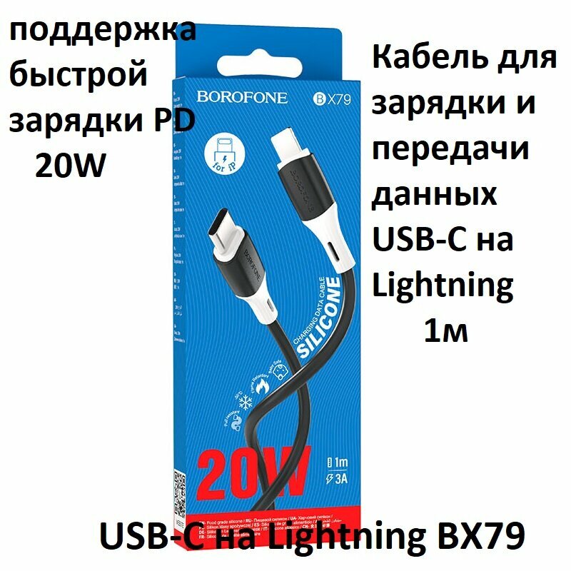 Купить Кабель Type-C для iPhone Borofone BX79 20W 1 метр черный