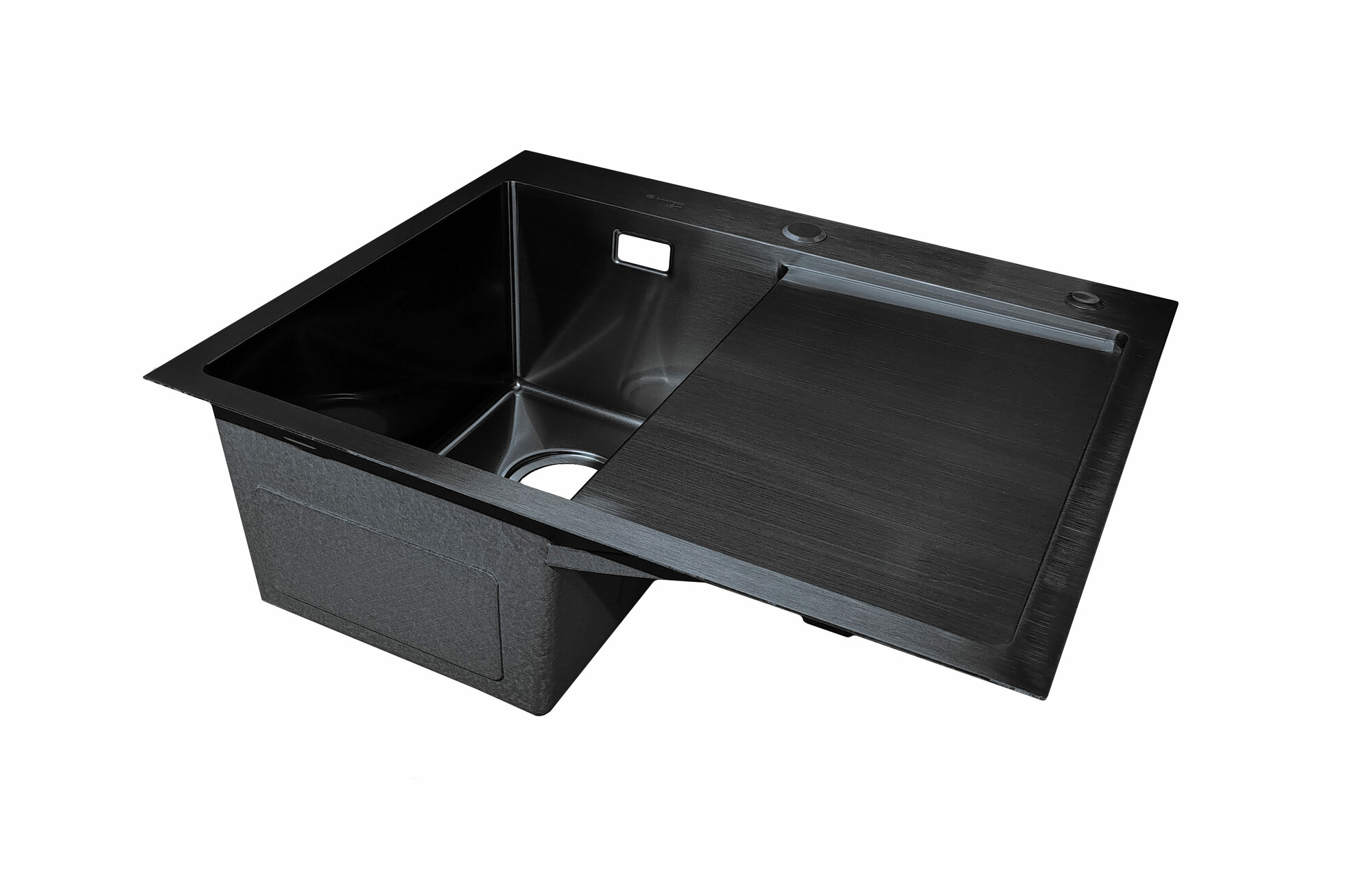 Мойка врезная из нержавеющей стали SANTREK AQUA 600х500х220 мм т 3,0 Черный графит D6050HRB правая (+ сифон + дозатор + коландер 440х220 мм)