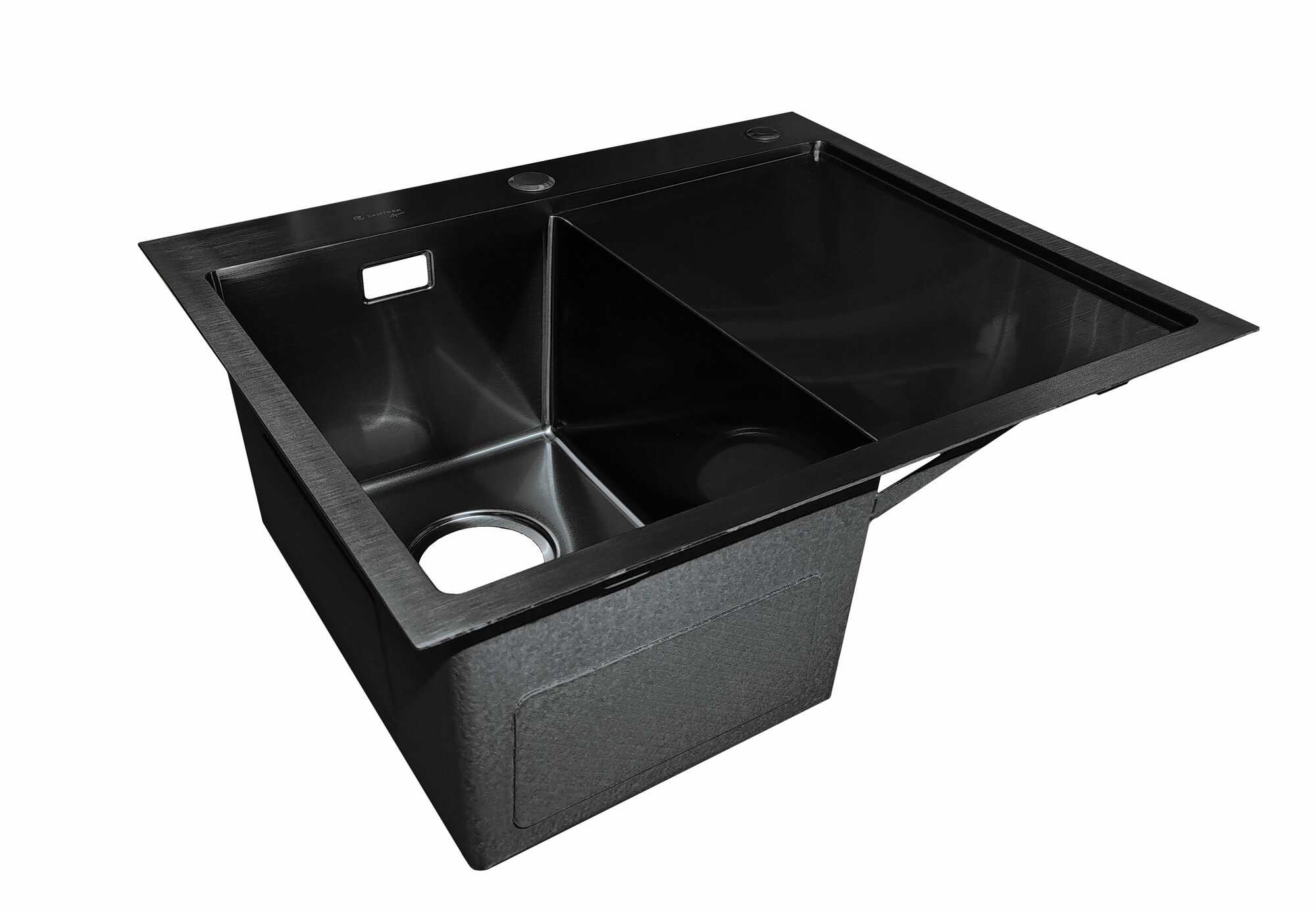 Мойка врезная из нержавеющей стали SANTREK AQUA 600х500х220 мм т 3,0 Черный графит D6050HLB левая (+ сифон + дозатор + коландер 440х220 мм)