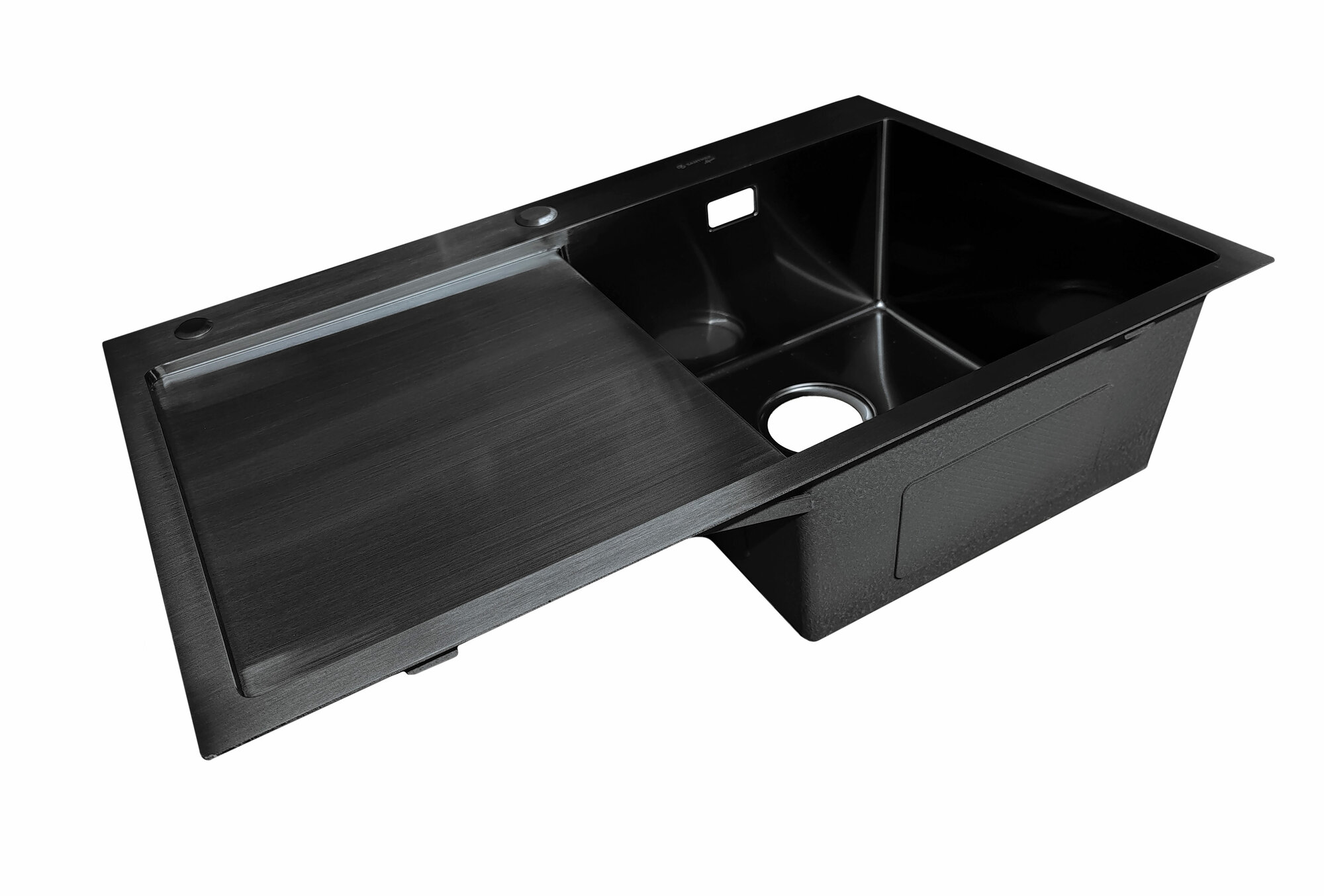 Мойка врезная из нержавеющей стали SANTREK AQUA 600х500х220 мм т 3,0 Черный графит D6050HLB левая (+ сифон + дозатор + коландер 440х220 мм)