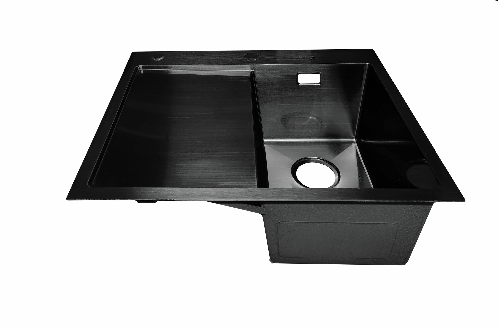 Мойка врезная из нержавеющей стали SANTREK AQUA 600х500х220 мм т 3,0 Черный графит D6050HLB левая (+ сифон + дозатор + коландер 440х220 мм)