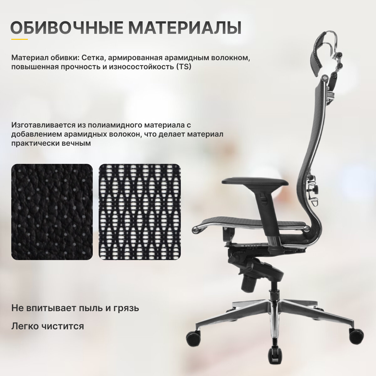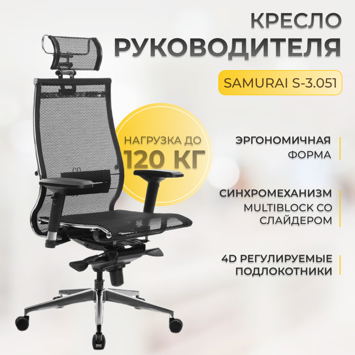 Кресло руководителя Метта "Samurai" S-1.03/ S-1.04, сетка-кевларовая нить черная, мультиблок