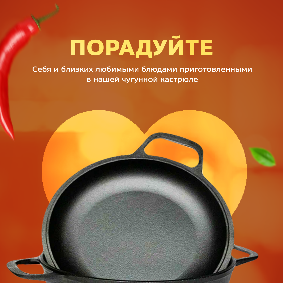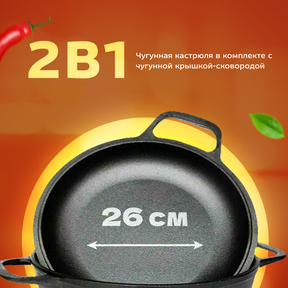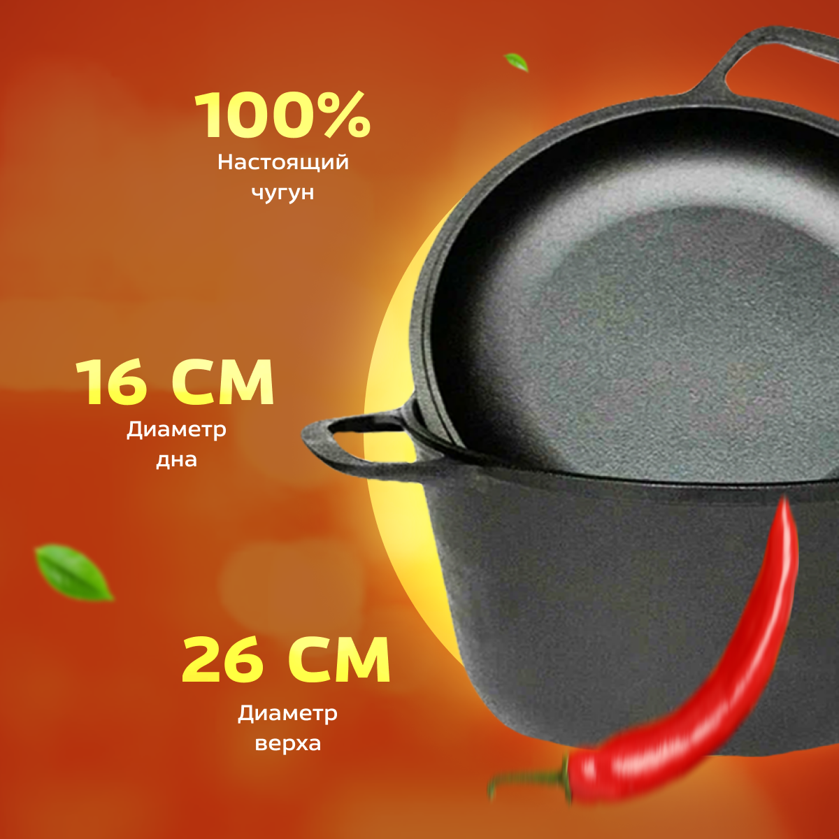 Кастрюля чугунная 6 л. с чугунной крышкой-сковородой Гардарика