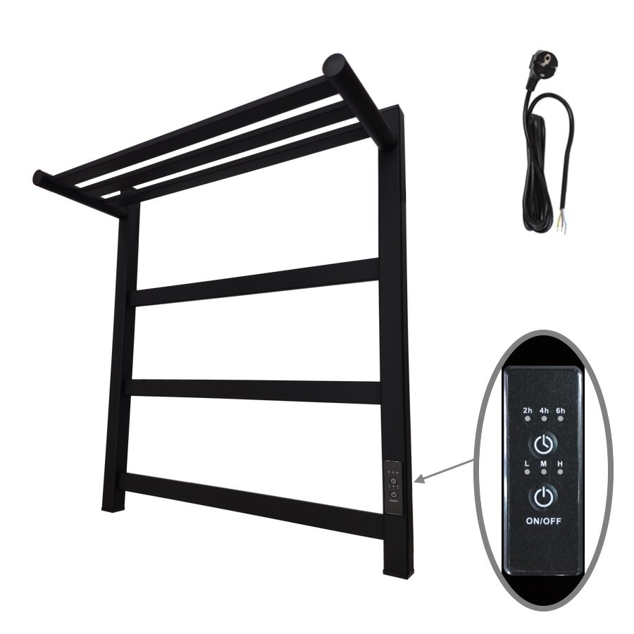 Маргроид Полотенцесушитель электрический ВИД 81-10 профильный с полкой 600х500 правый, скр.монтаж, СНШ, черный матовый(RAL 9005), (Ferrum, равномерные перкаладины), Маргроид