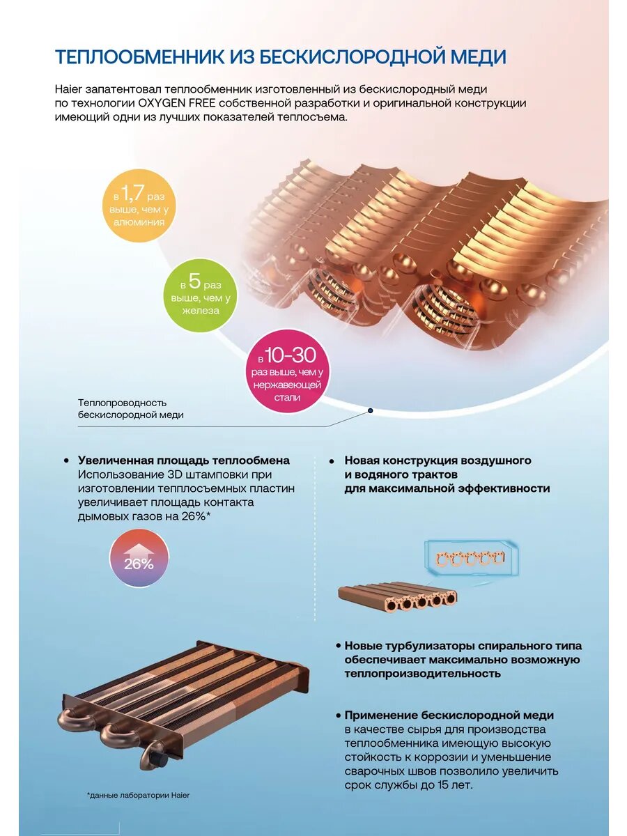 | Материал первичного теплообменника | медь |