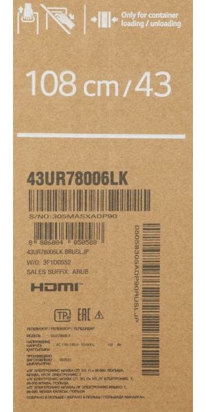 ЖК-телевизор LG 43UR78006LK.ARUB 43", black (2023)