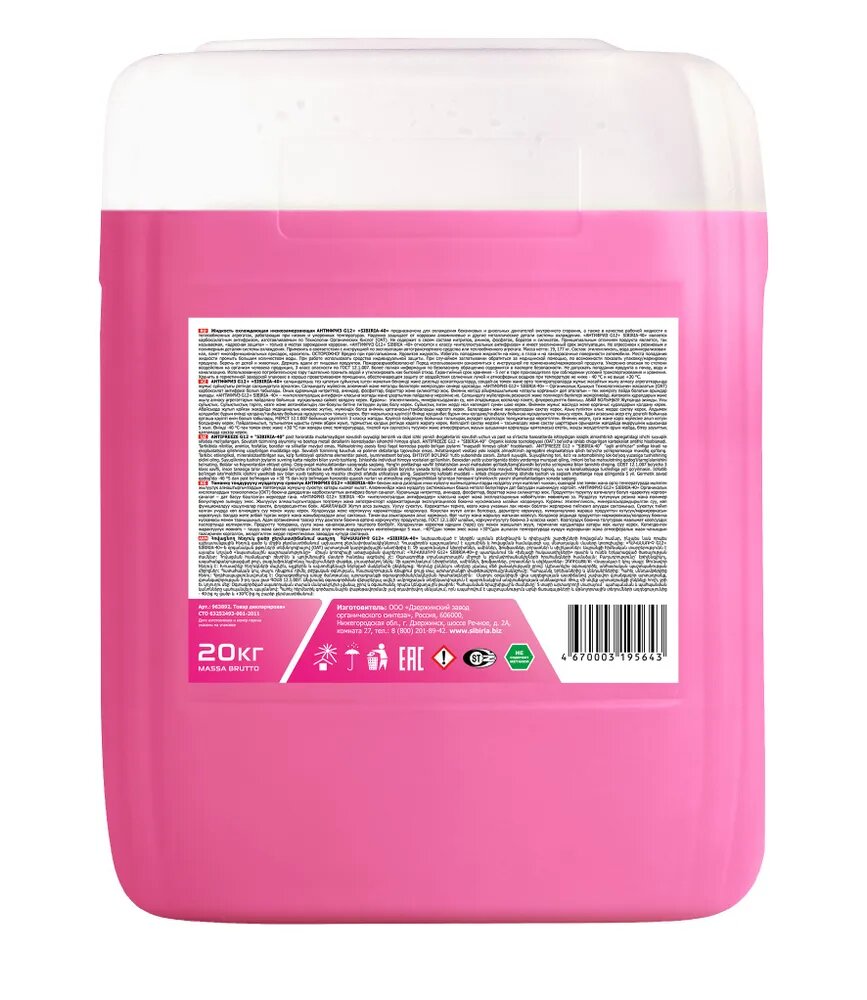 Антифриз Sibiria G12+ Готовый -40 Красный 20 Кг 963892 Sibiria арт. 963892