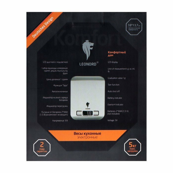 Весы кухонные Leonord Le-1702, электронные, до 5 кг, LCD дисплей, серебристые Leonord 9750966 . интересное: