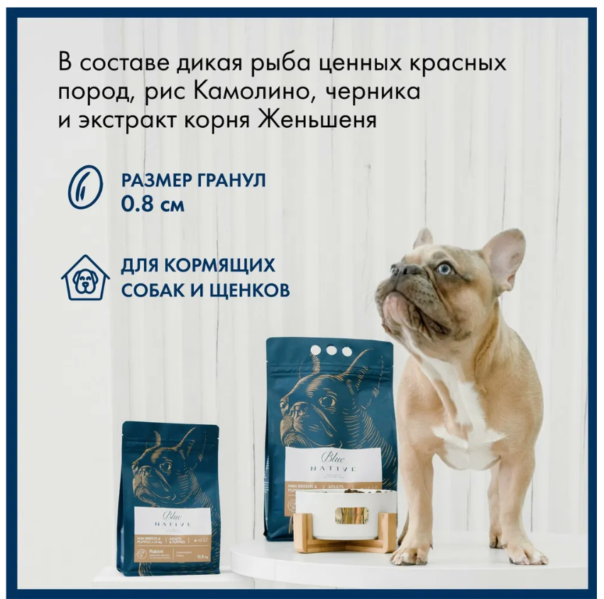 BLUE NATIVE Сухой корм для щенков и собак мелких пород кролик 500 г